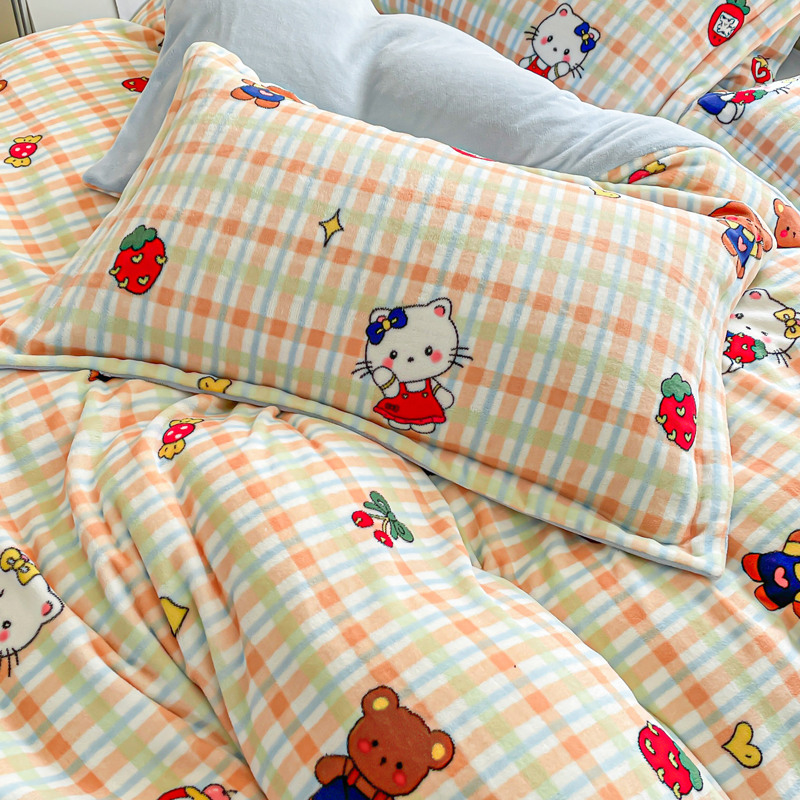 一比一 2025新款双面牛奶绒四件套 草莓喵蓝