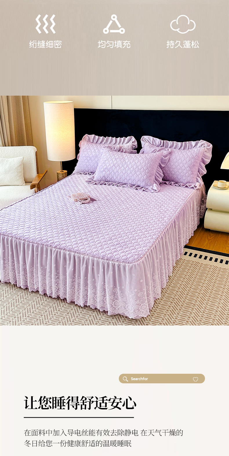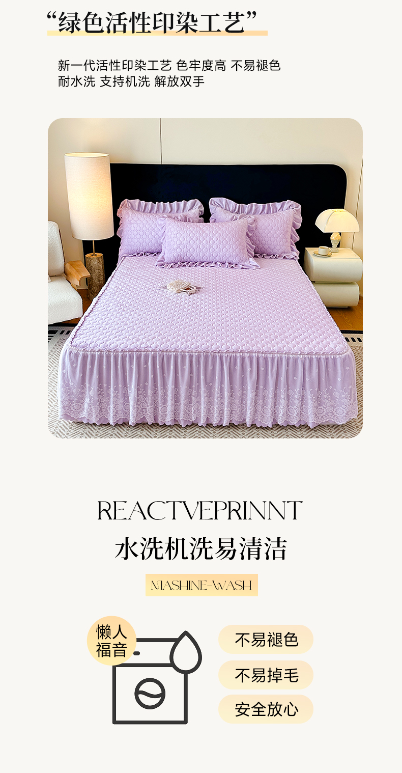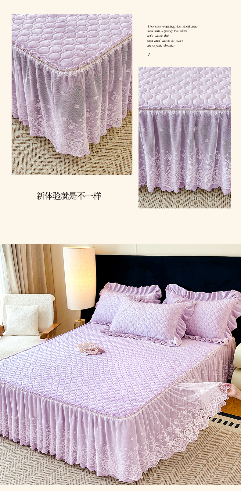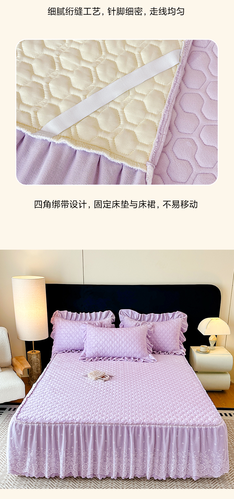 当前位置: 91家纺网 > 商品网购 > 床品套件 > 三件套 > 民新家纺 2025新款牛奶绒夹棉床裙三件套 浪漫时光-浅紫