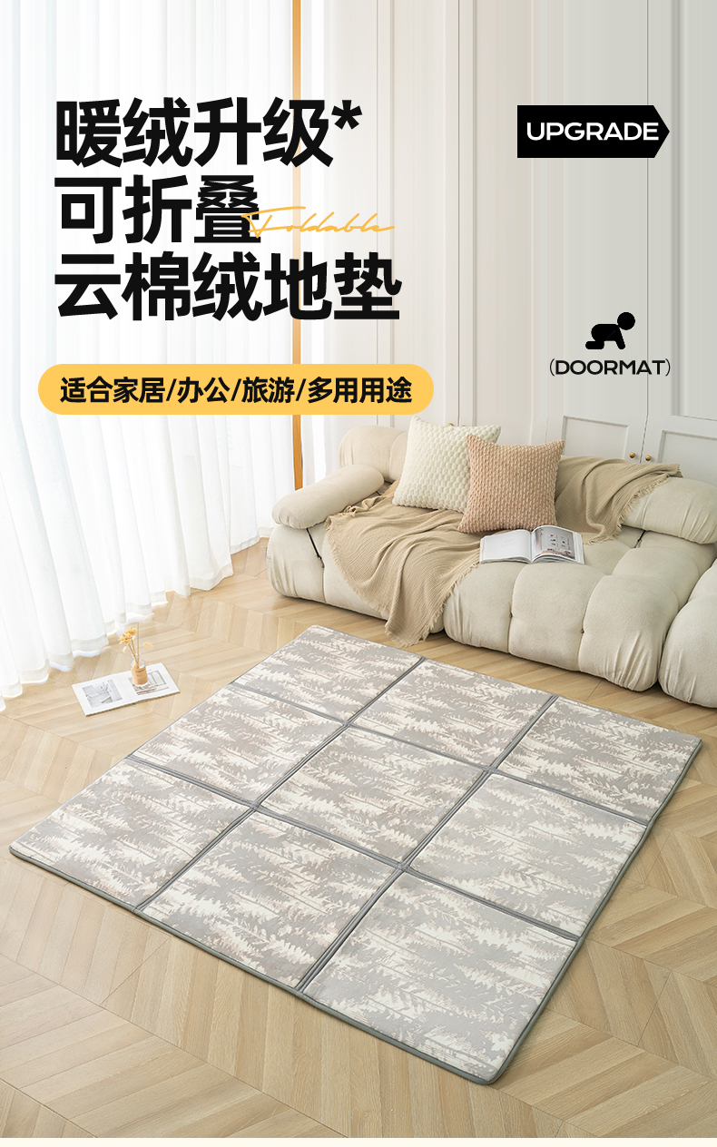 (总)新太阳蚊帐 2025新款云棉绒可折叠纯色地垫,卡其色,米白色,墨黑色