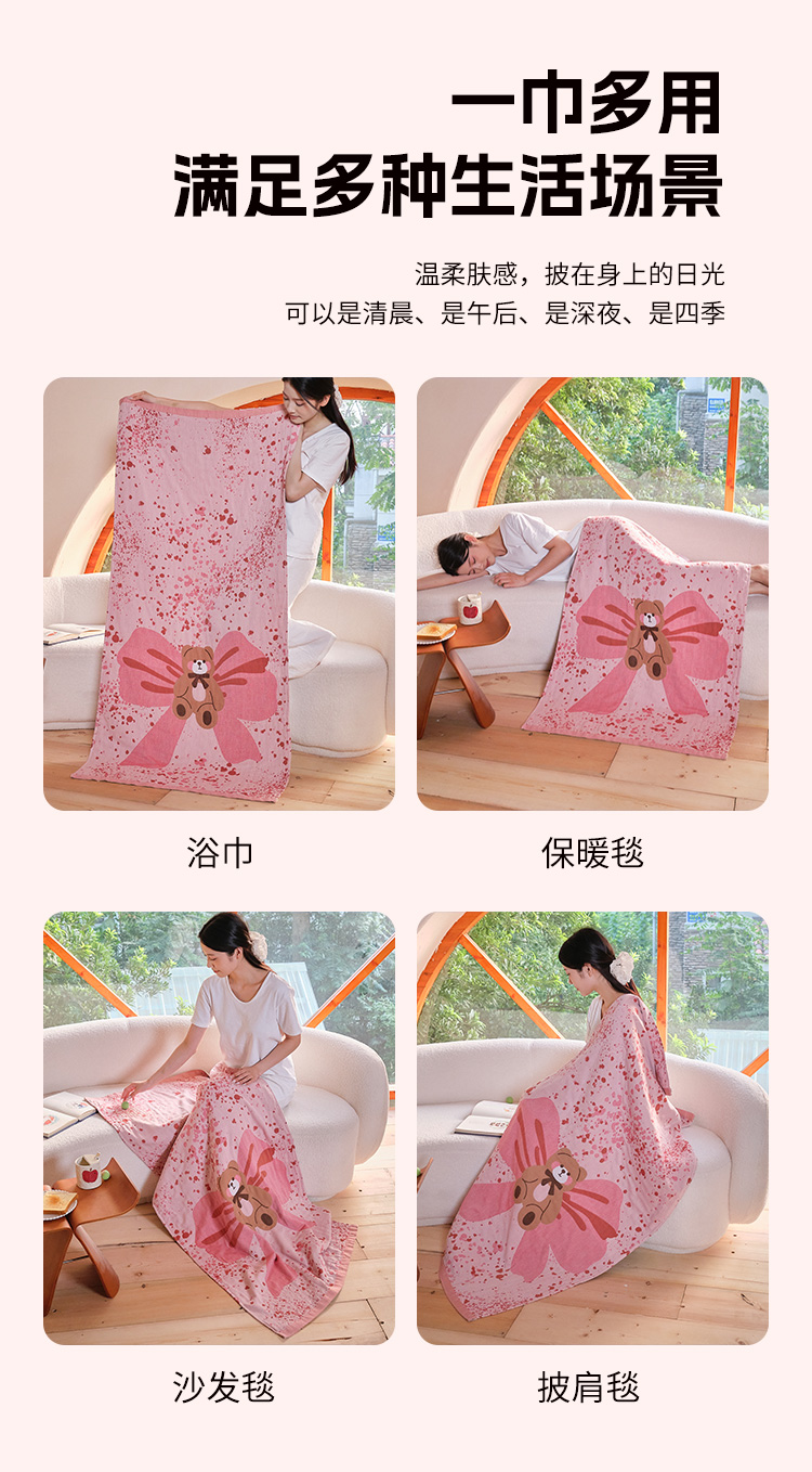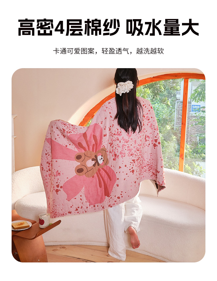 当前位置: 91家纺网 > 商品网购 > 居家日用 > 毛巾/浴巾/浴袍 > 浴巾 > 沐瑟家纺 2025新款卡通A类全棉四层纱布浴巾加大毛巾-第一组 蝴蝶熊 80*160cm