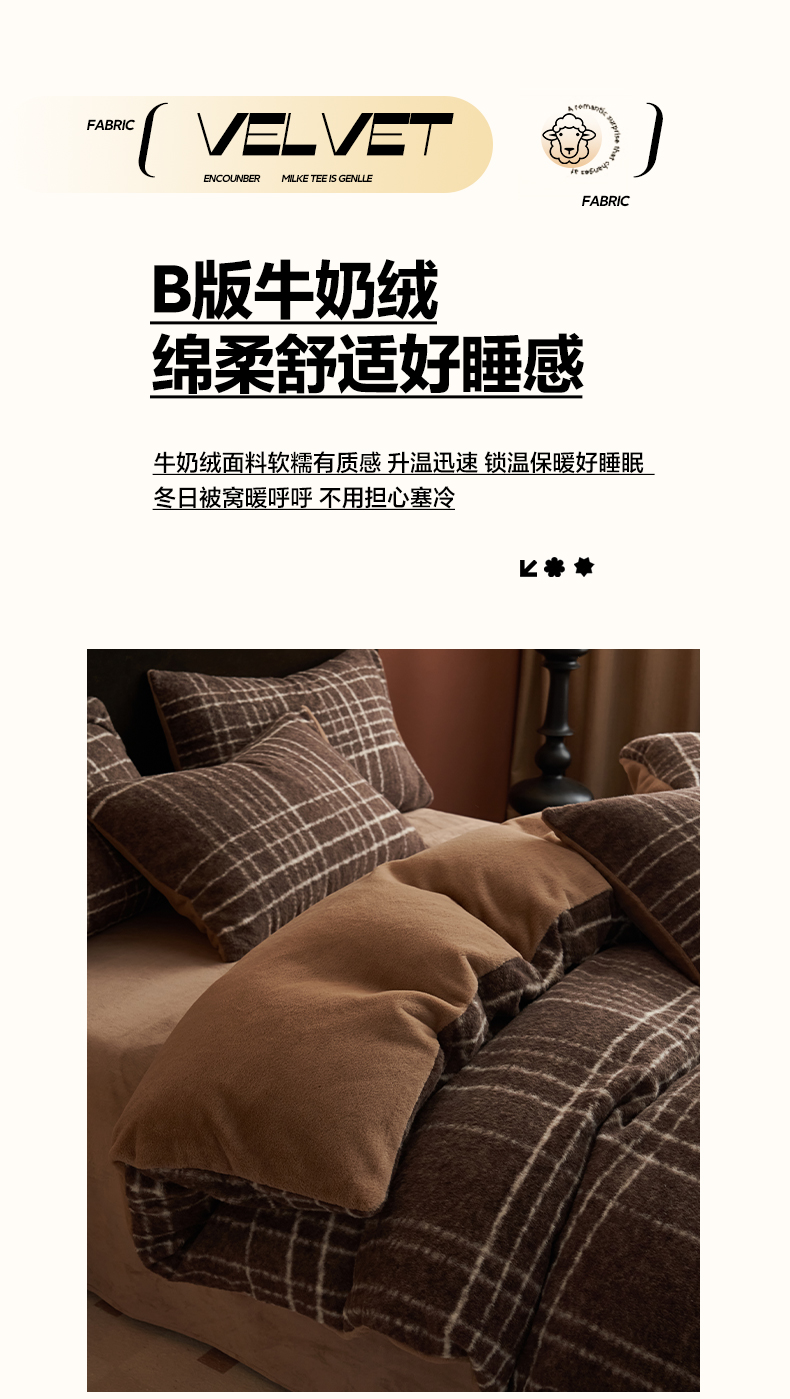 当前位置: 91家纺网 > 商品网购 > 床品套件 > 四件套 > 其它四件套 > 晨曦家纺 2025新款加厚加绒羊驼绒四件套牛奶绒四件套 年华-咖
