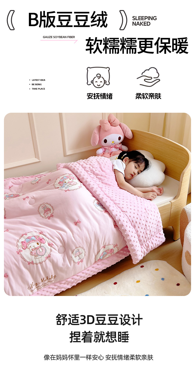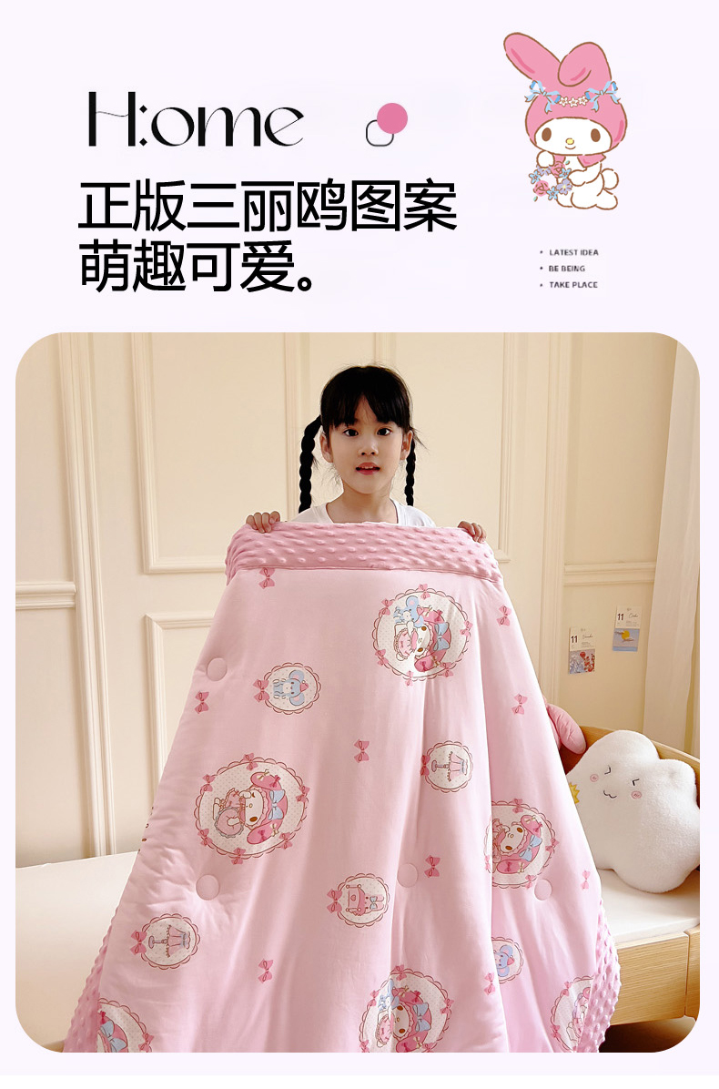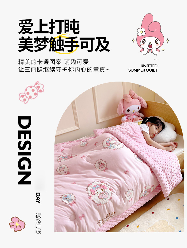 • 91家纺网 家纺一手货源 找家纺 鱼宝 2025新款三丽鸥针织棉豆豆被 甜甜美乐蒂