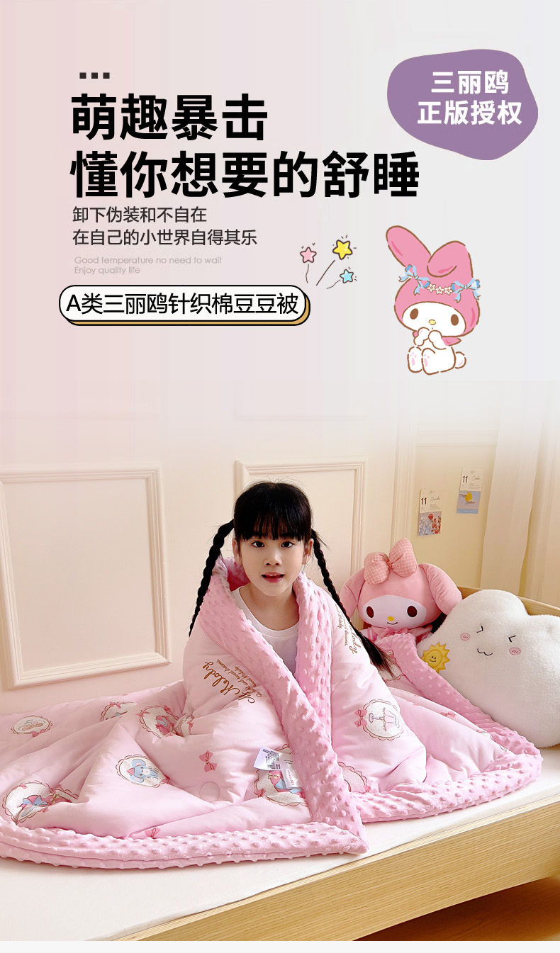 当前位置: 91家纺网 > 商品网购 > 被子 > 冬被 > 鱼宝 2025新款三丽鸥针织棉豆豆被 甜甜美乐蒂