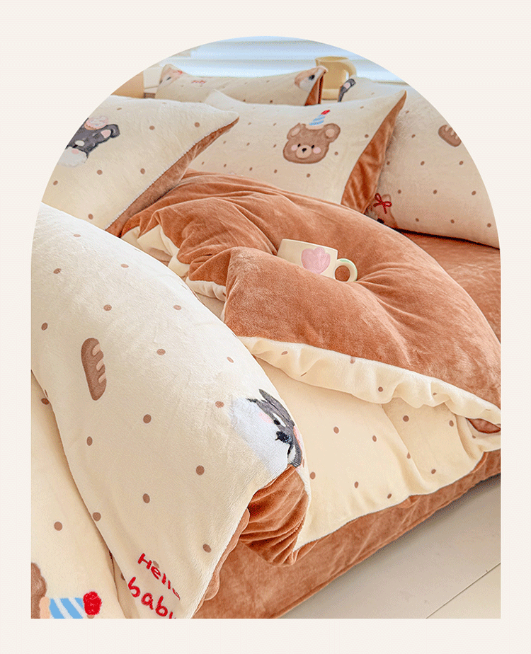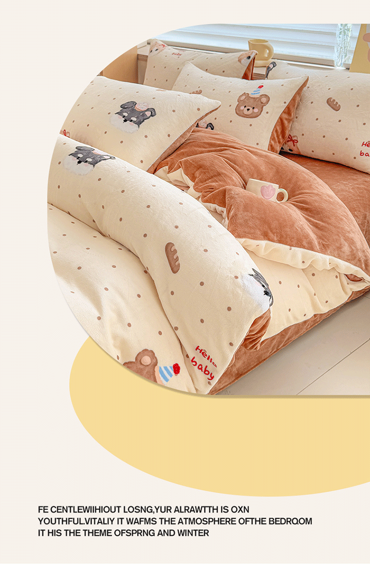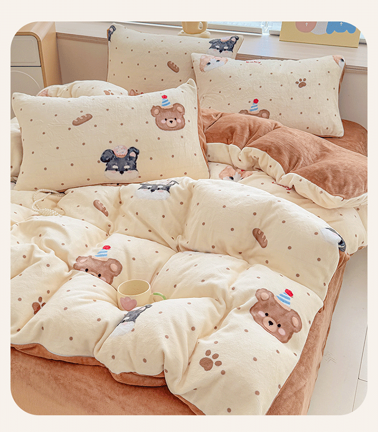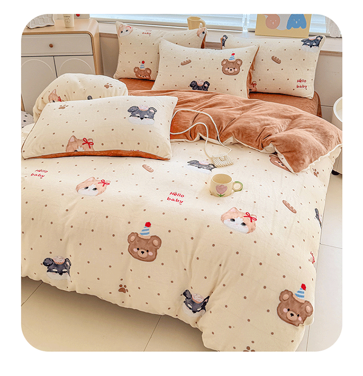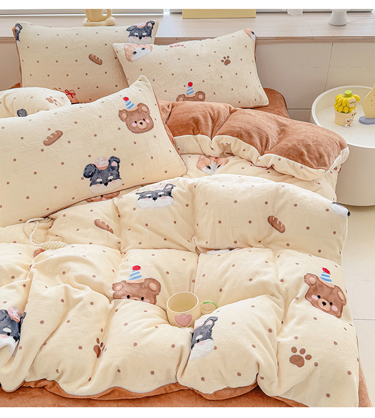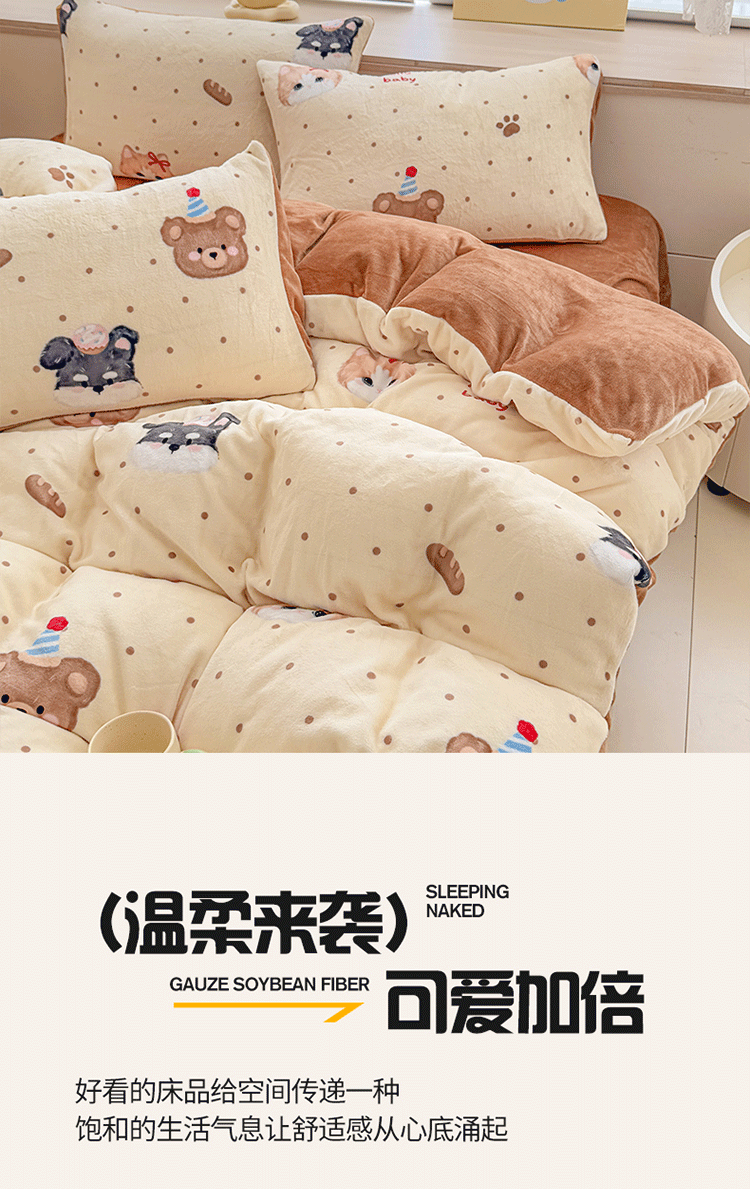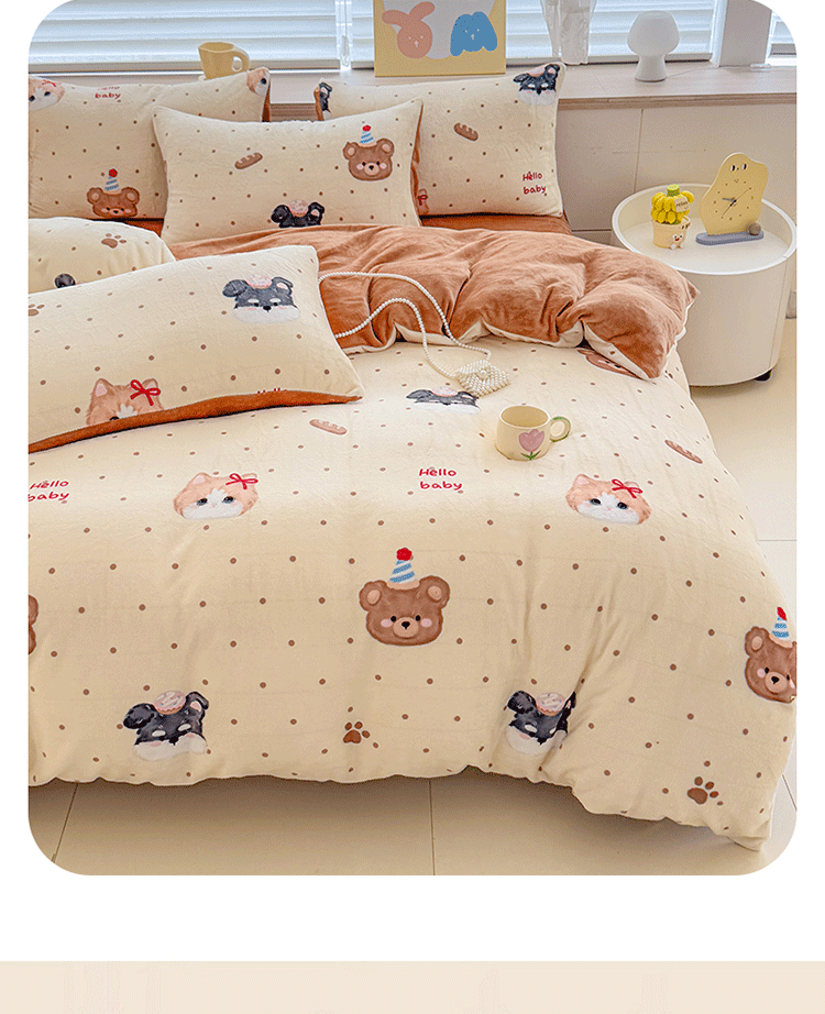 (总)梦舒阳家纺 2025贴布绣牛奶绒四件套可爱卡通牛奶绒刺绣四件套量大优惠,小灰灰,萌萌狗,美美猫