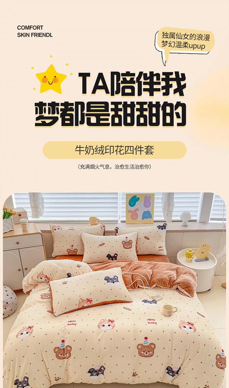 (总)梦舒阳家纺 2025牛奶绒四件套牛奶绒单被套牛奶绒床笠款四件套小清新可爱套件,咔咔小熊,猫咪酱,煤球宝贝,炫酷黑猫,炫影蝴蝶,一帘幽梦,豹纹猫咪,绿意盎然,布布萌宠,布丁狗,草莓猫咪,蛋糕猫咪,蝴蝶结