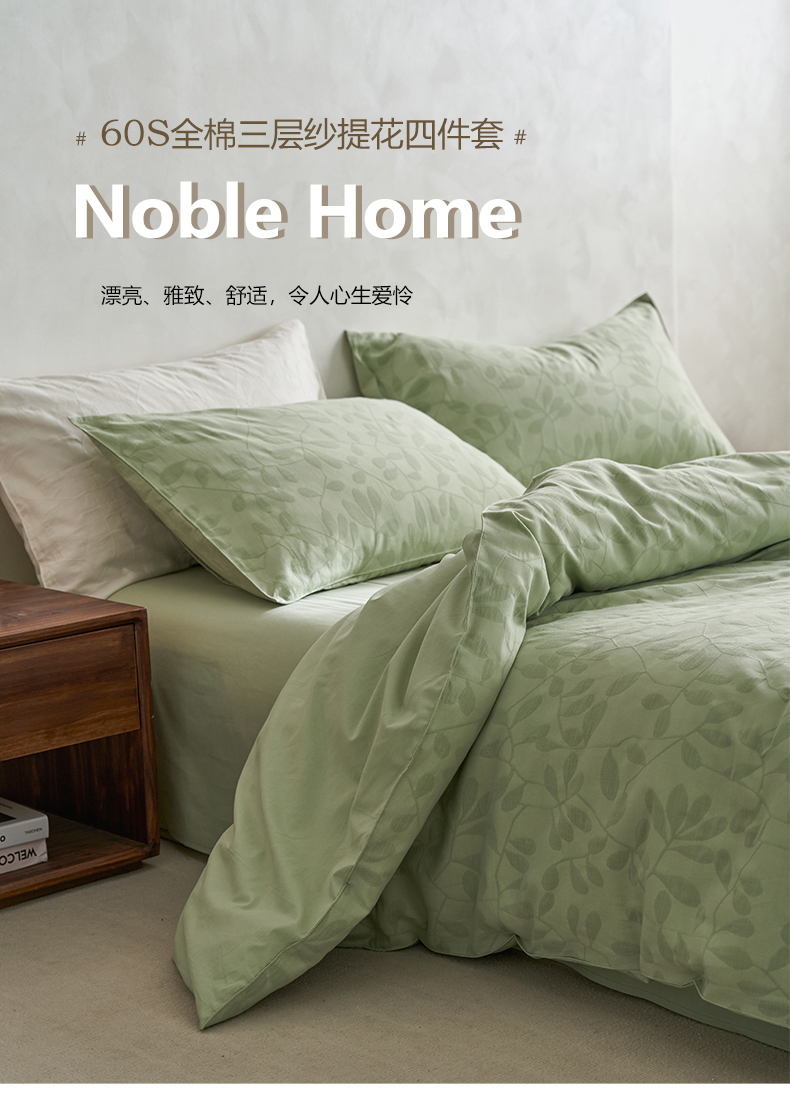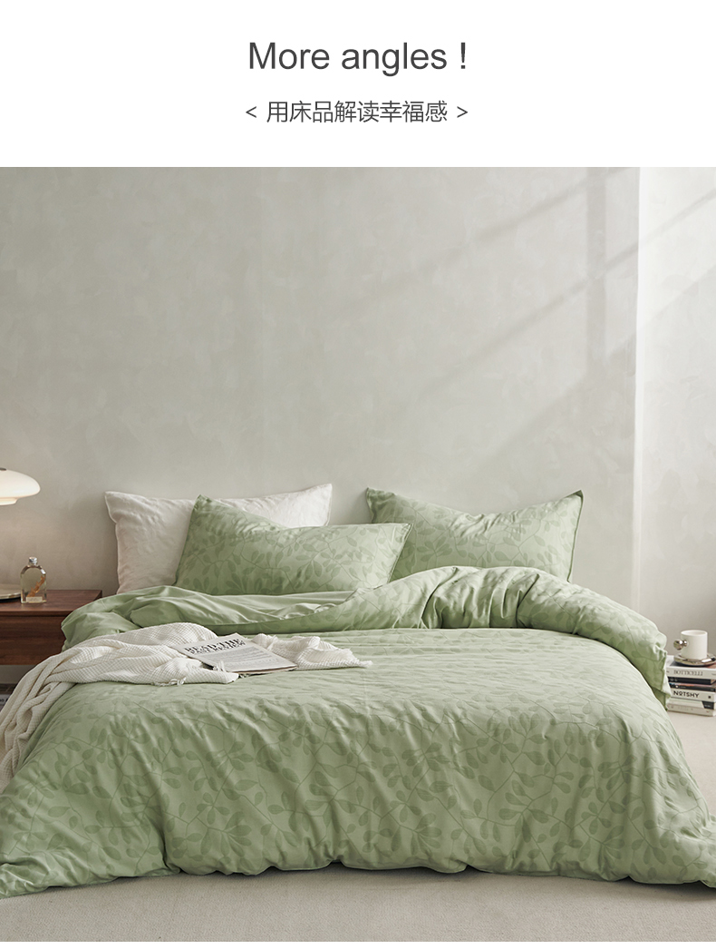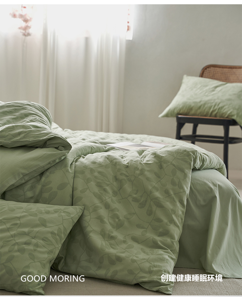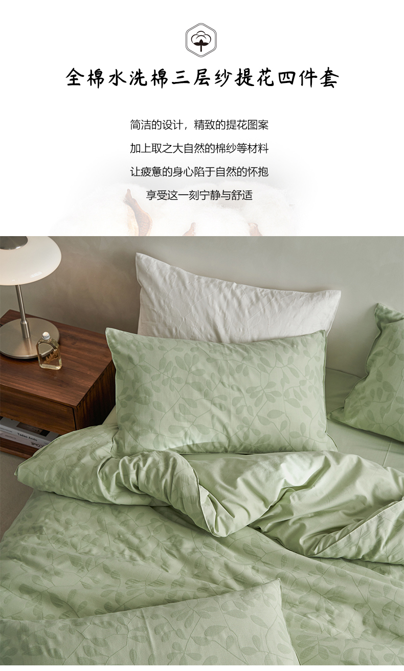 当前位置: 91家纺网 > 商品网购 > 床品套件 > 四件套 > 水洗棉四件套 > 宜代光年 2025新款60s水洗棉提花系列四件套 叶繁-绿