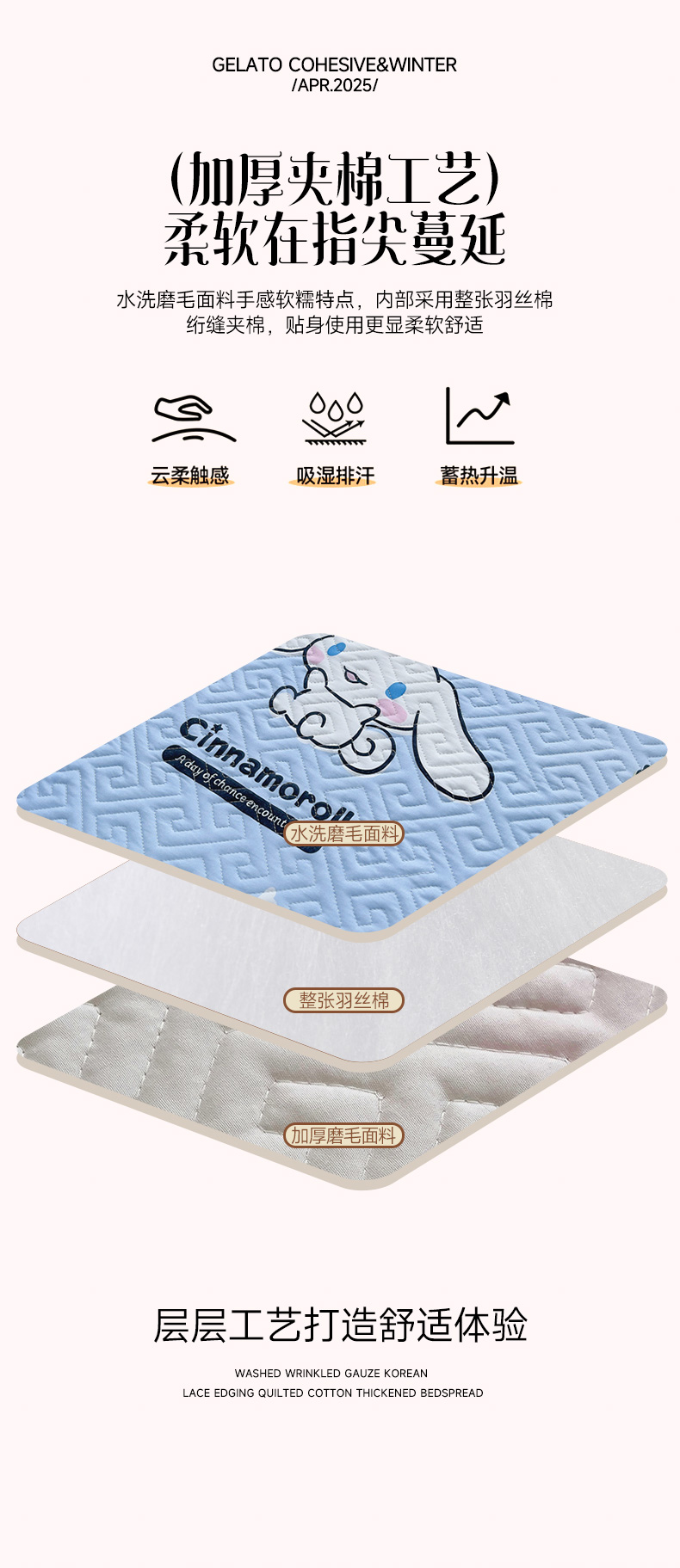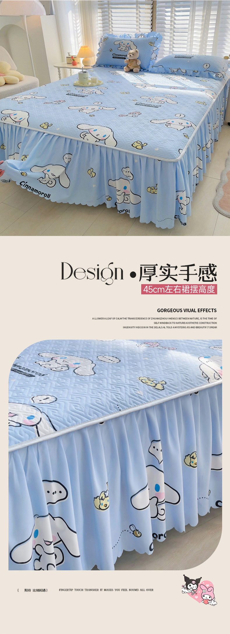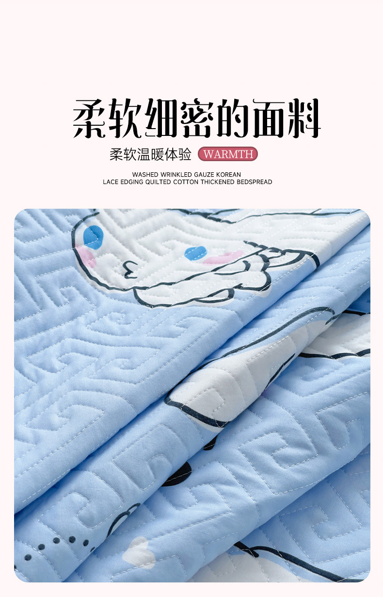 • 91家纺网 家纺一手货源 找家纺 艾兜坊 2025新款三丽鸥水洗棉夹棉床裙 木马玉桂狗
