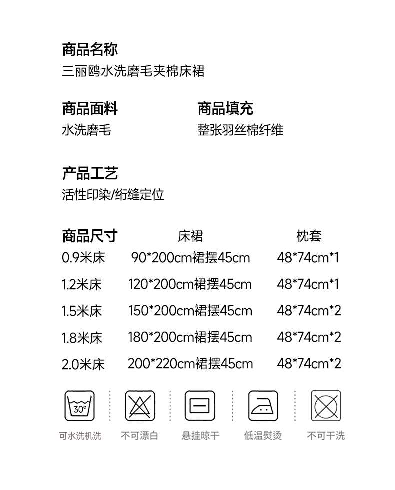 150X200cm床裙+枕套2只