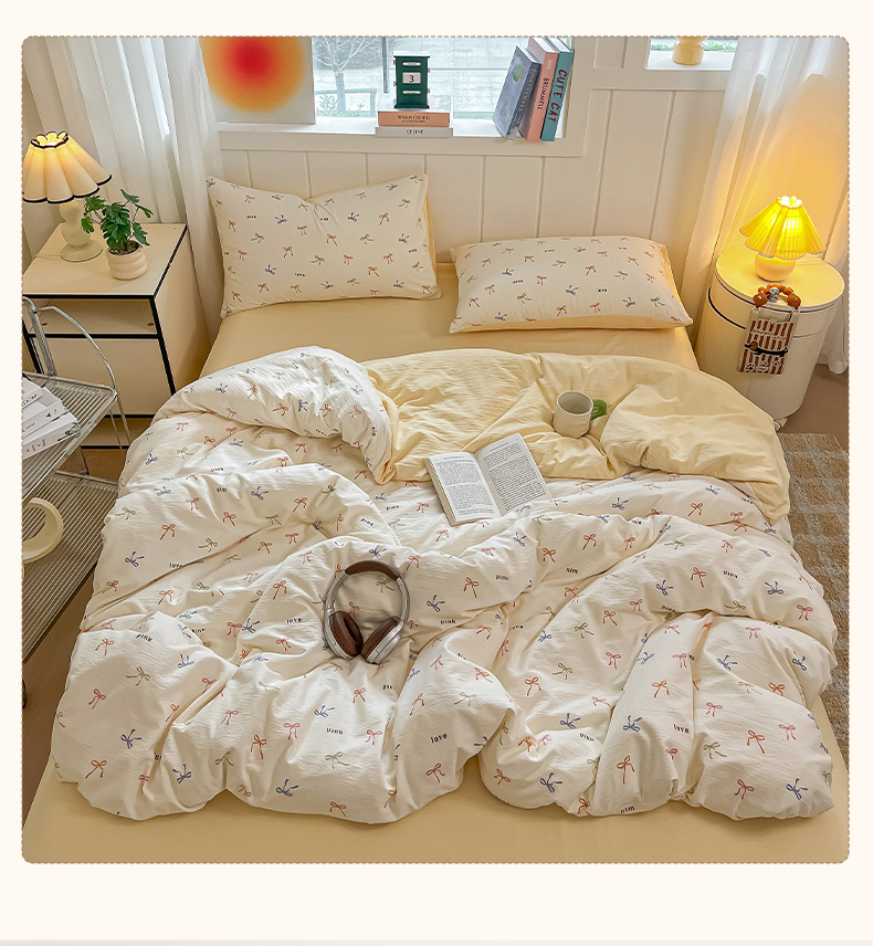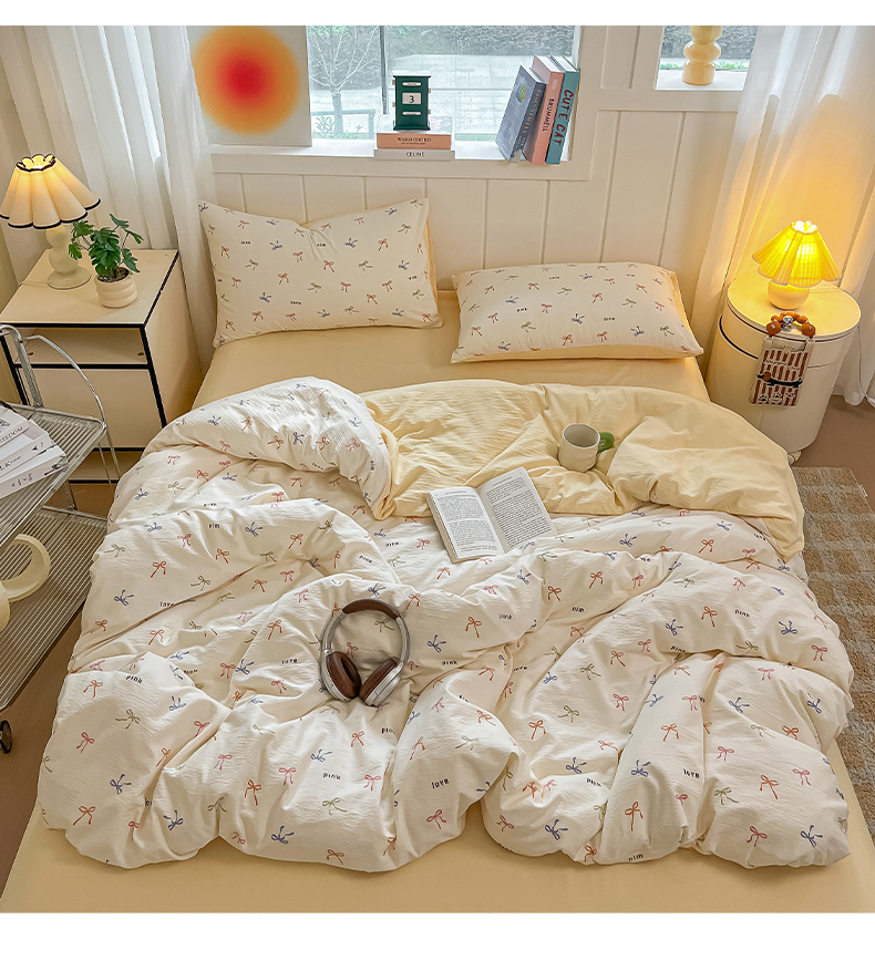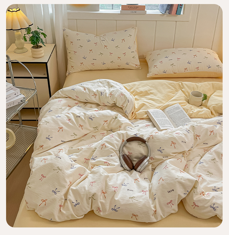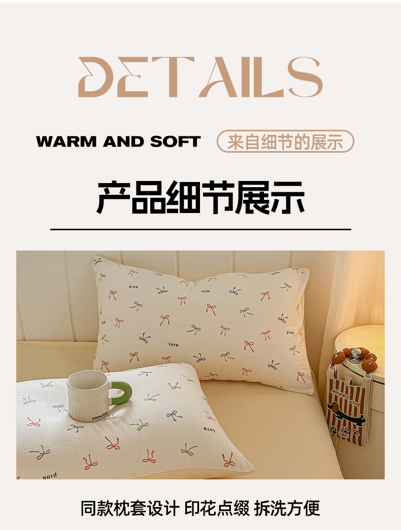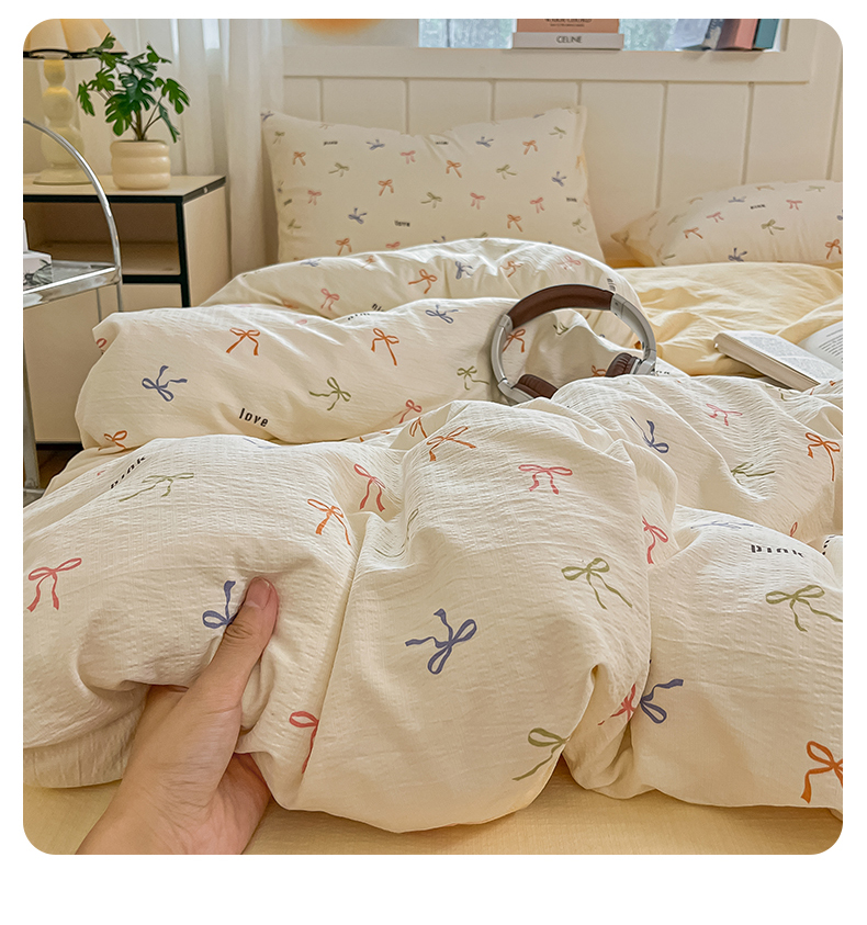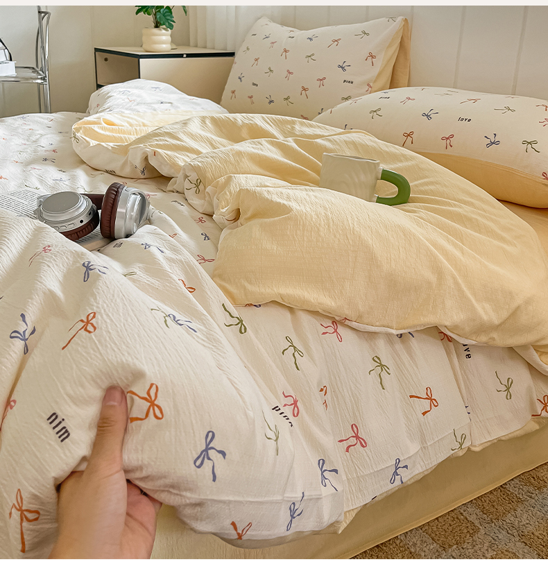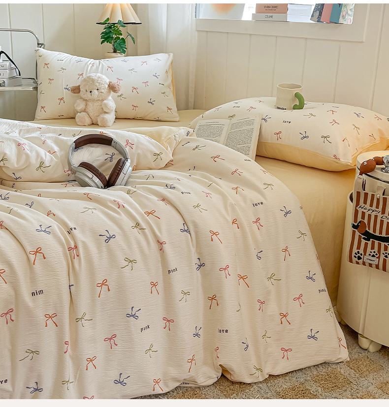 当前位置: 91家纺网 > 商品网购 > 床品套件 > 四件套 > 其它四件套 > 佳鸿家纺 2025新款卡通云感双层纱四件套碎花学生宿舍三件套床单款 彩色蝴蝶结