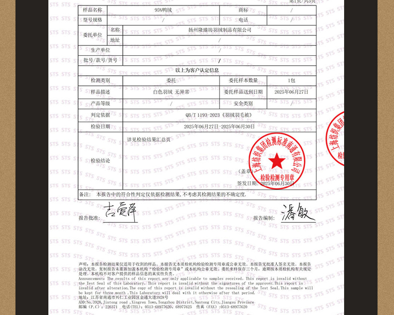 95白鸭绒 200*230填充900克春秋被 | ¥1020.00 |