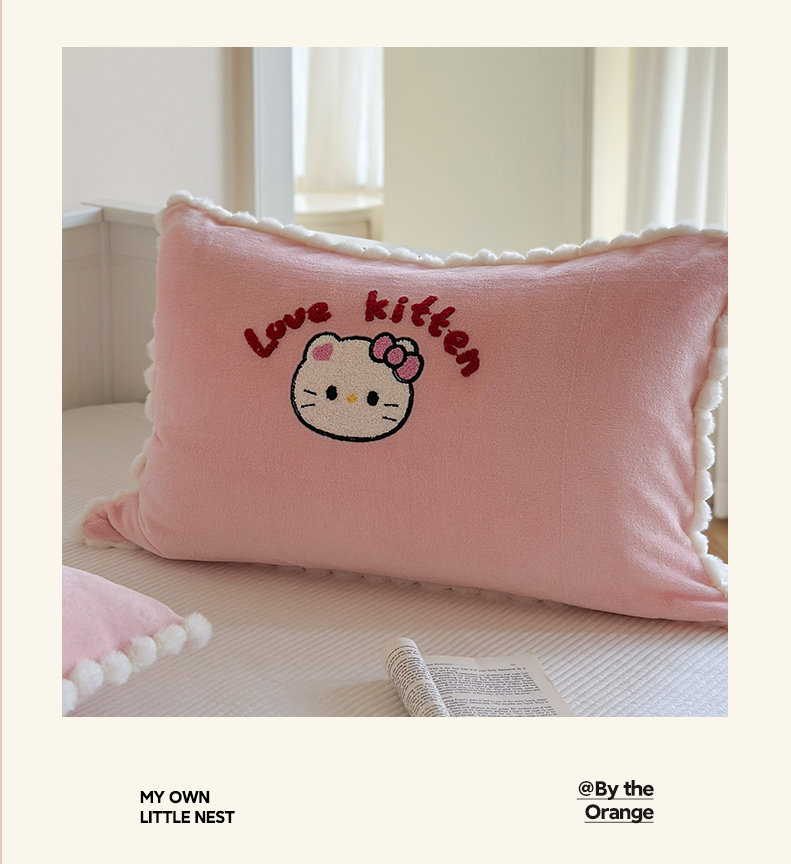 寐居家纺 2025新款牛奶绒毛巾绣单枕套 少女喵·粉