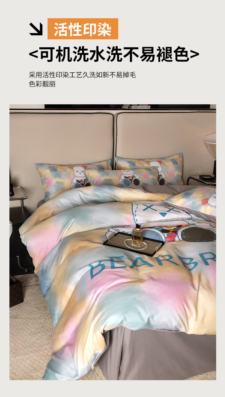 色鬼布艺高端家居主号 2025新款直播热款网红款四季棉四件套 七彩熊