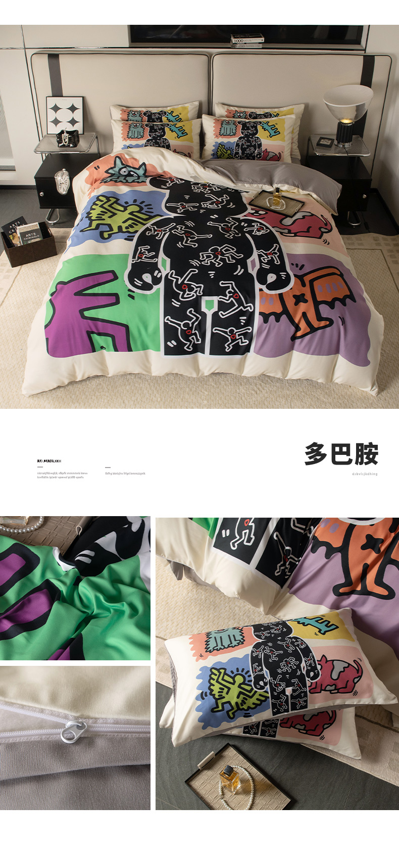 商品名称:色鬼布艺高端家居主号 2025新款直播热款网红款四季棉四件套 七彩熊