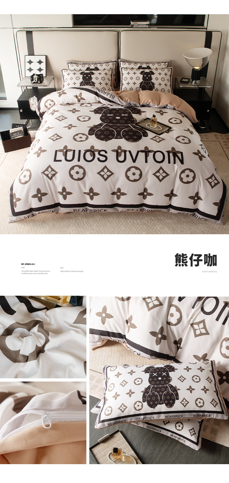 (总)色鬼布艺高端家居主号 2025新款数码印花牛奶绒四件套,白香花,黑白V,灰迪,经典兔,咔芬,卡夫兔,路易兔,罗兰粉,萌迪,萌萌兔,七彩熊,棋盘兔,熊头白,熊仔白,熊仔咖