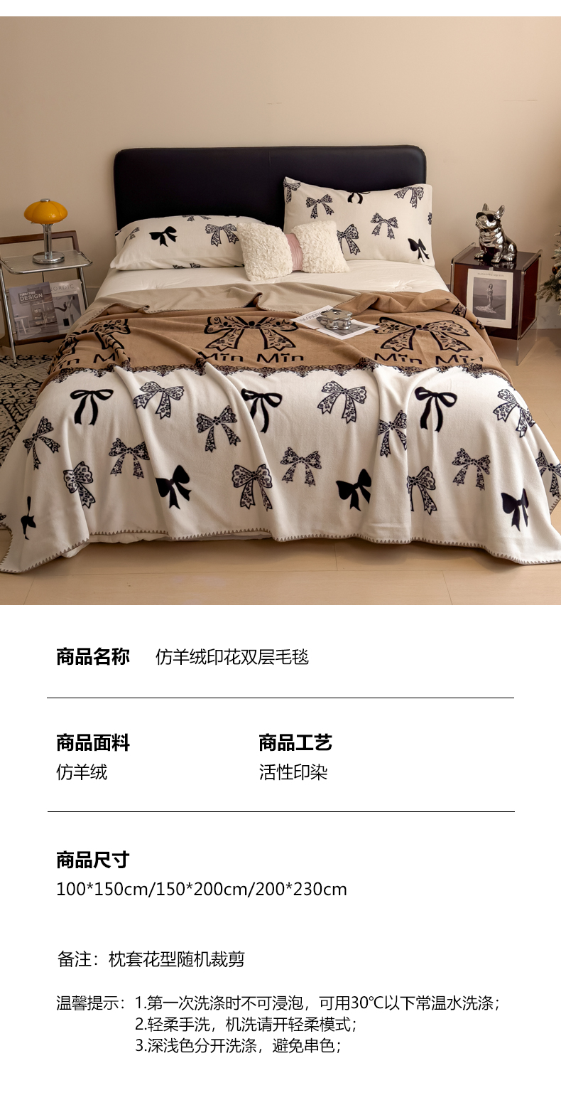 商品名称:(总)慕木家纺 2025新款高克重印花仿羊绒双层毛毯毛毯毯子(可供跨境提供买家秀)