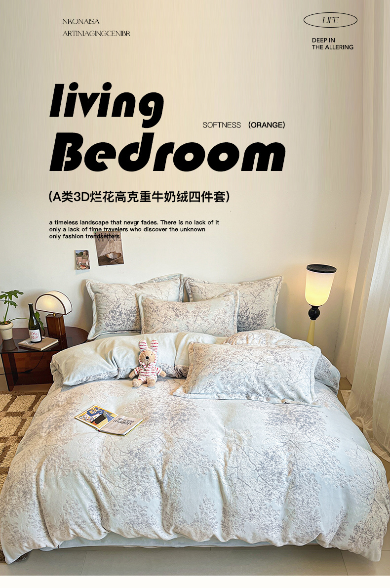 当前位置: 91家纺网 > 商品网购 > 床品套件 > 四件套 > 牛奶绒四件套 > 寐居家纺 2025新款3D烂花牛奶绒四件套 浅梦絮语