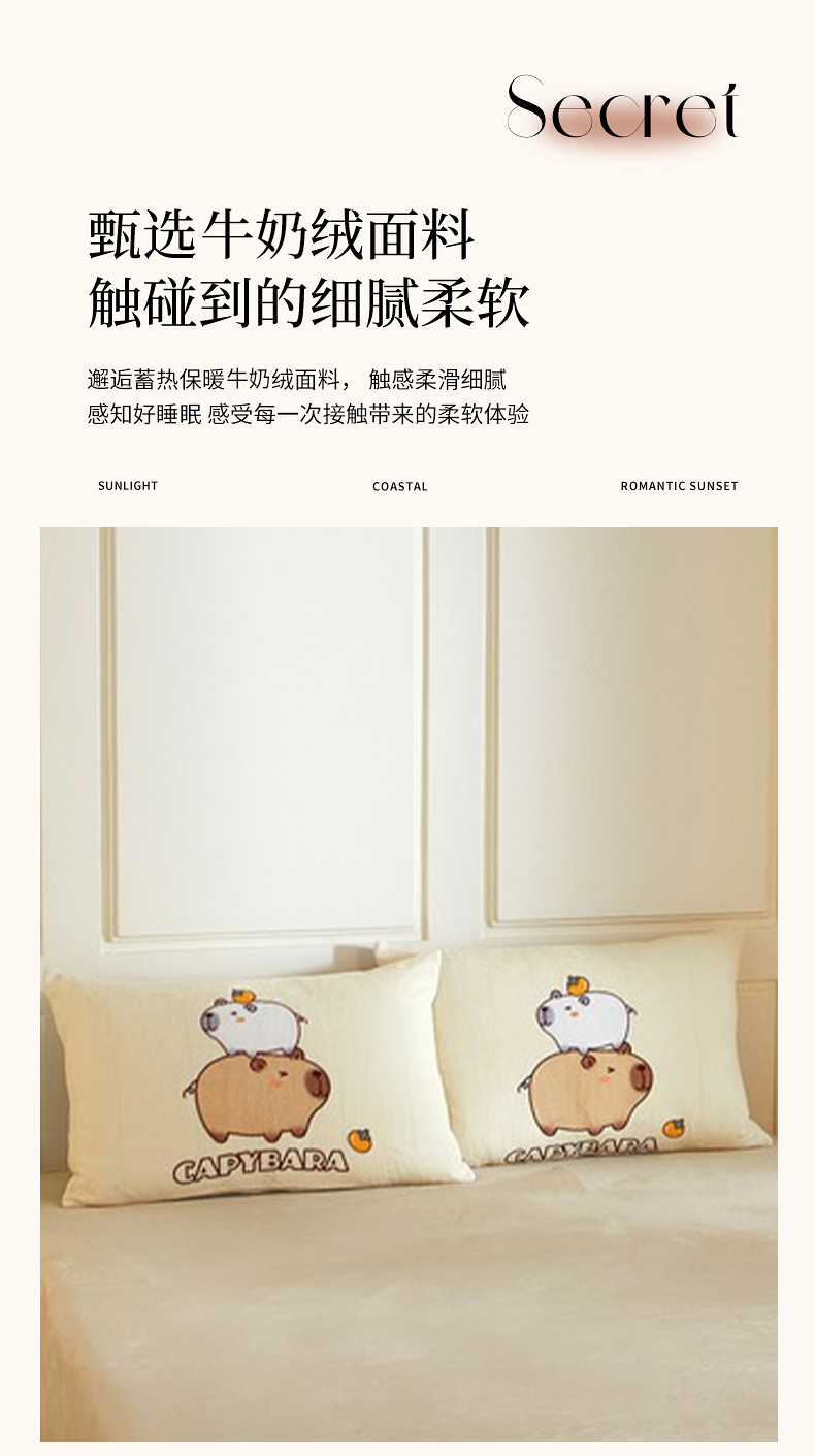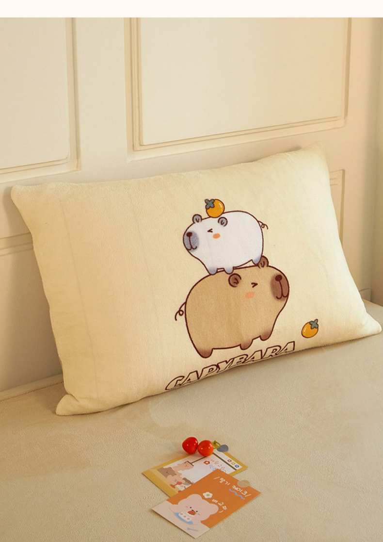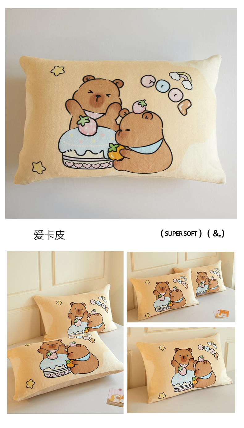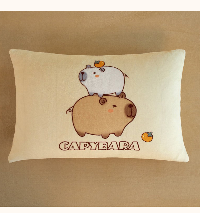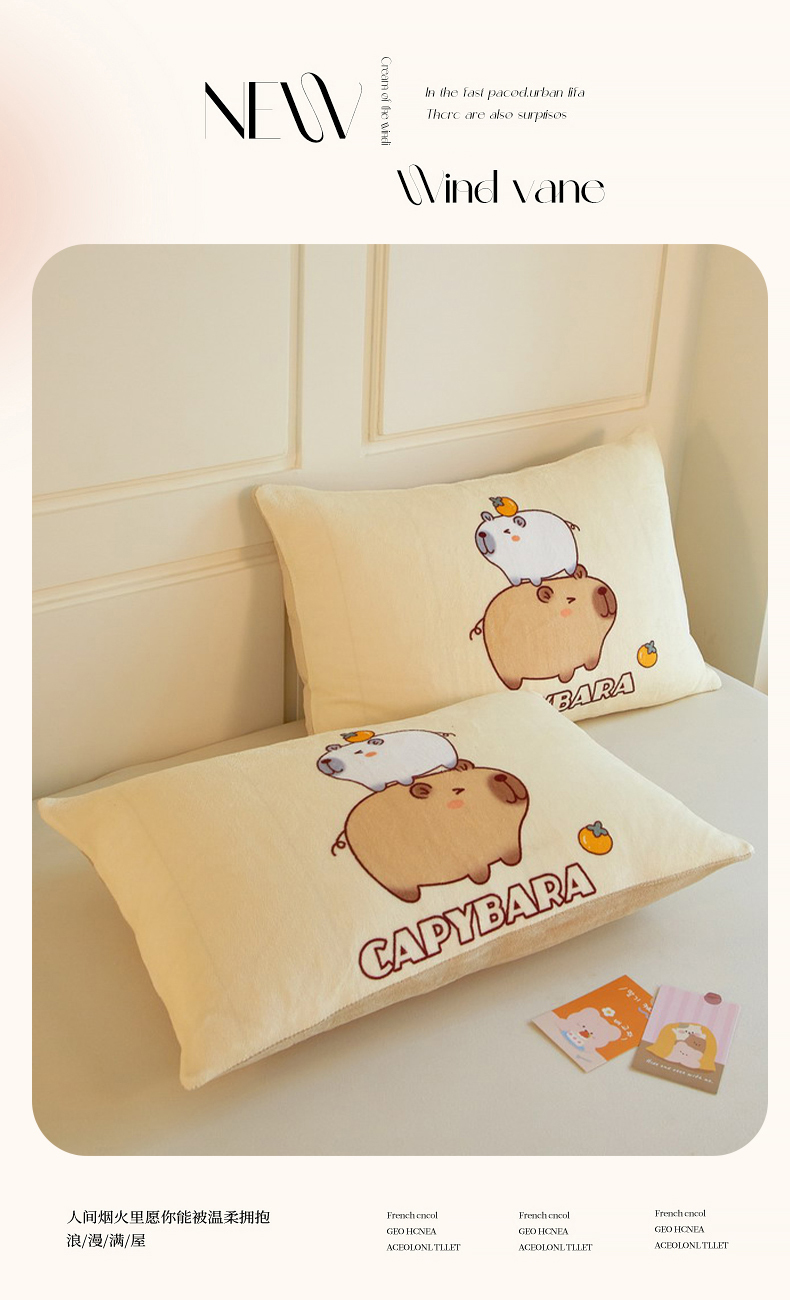 蘭菲家纺 2025新款卡皮巴拉牛奶绒单枕套 枕套单件 沉浸式