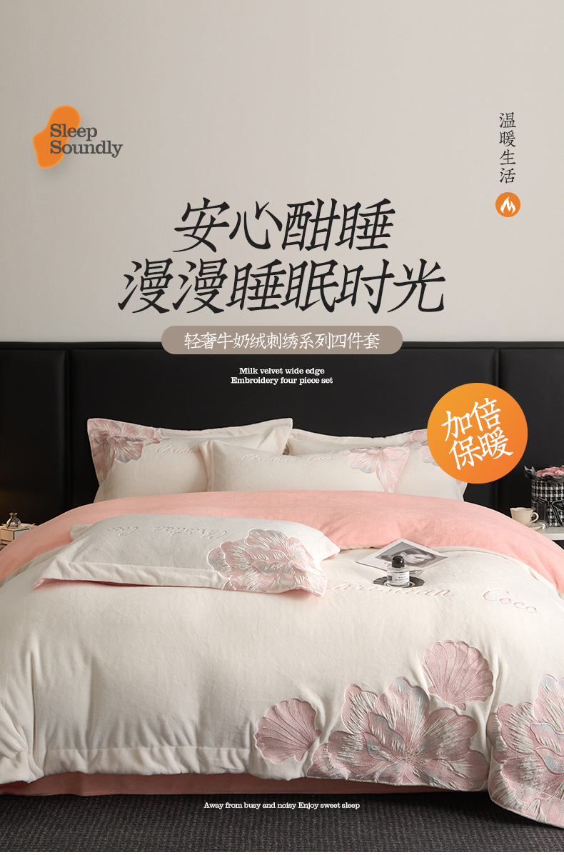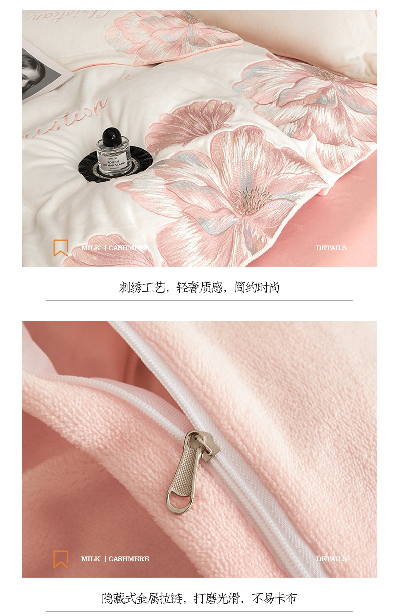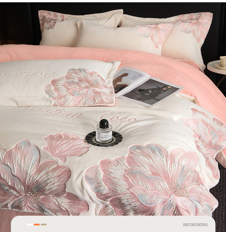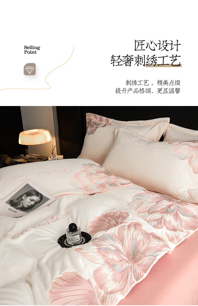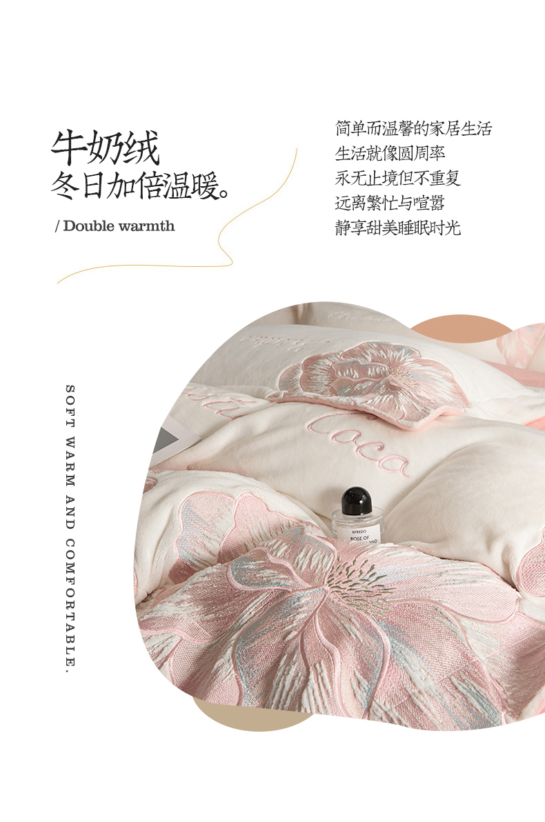 当前位置: 91家纺网 > 商品网购 > 床品套件 > 四件套 > 牛奶绒四件套 > 置顶家纺 2025新款轻奢刺绣牛奶绒四件套-COCO小姐系列 COCO小姐牛奶绒-奶白+粉
