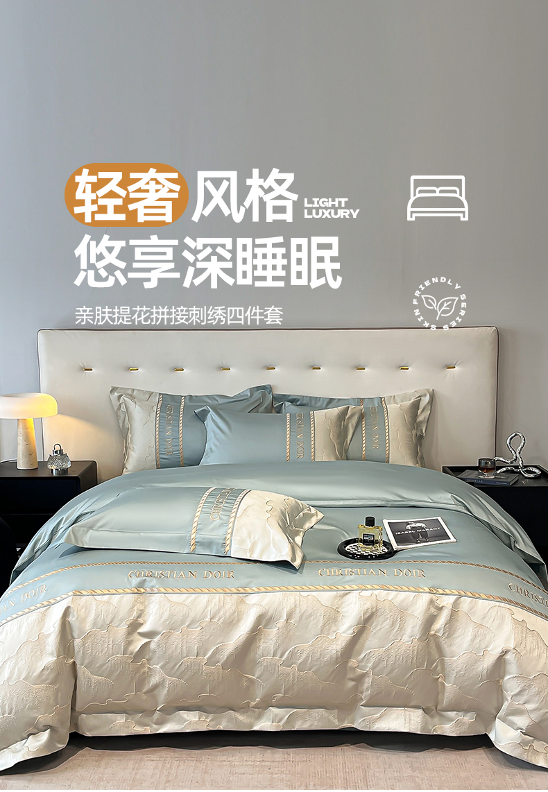 当前位置: 91家纺网 > 商品网购 > 床品套件 > 四件套 > 提花四件套 > 置顶家纺 2025新款亲肤提花拼接刺绣四件套系列 璞云-繁星蓝