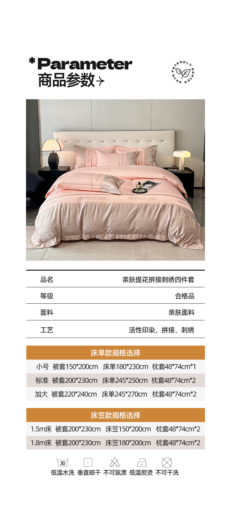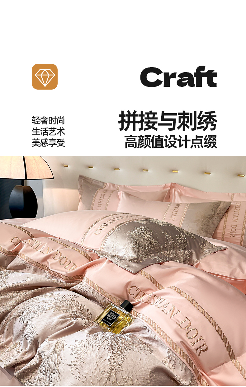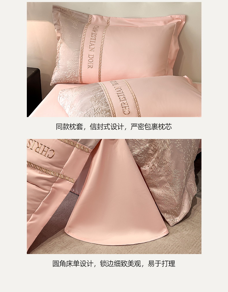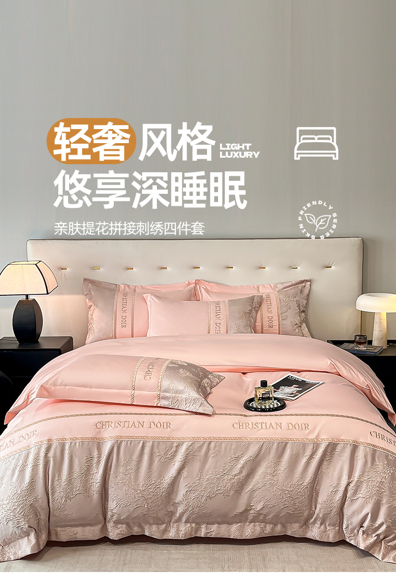 商品名称:置顶家纺 2025新款漫芙提花亲肤系列四件套 优尼-玉粉