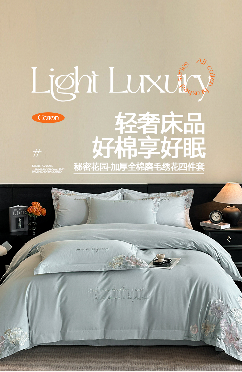 当前位置: 91家纺网 > 商品网购 > 床品套件 > 四件套 > 磨毛活性四件套 > 置顶家纺 2025秋冬新款加厚全棉磨毛四件套-秘密花园 秘密花园-繁星蓝
