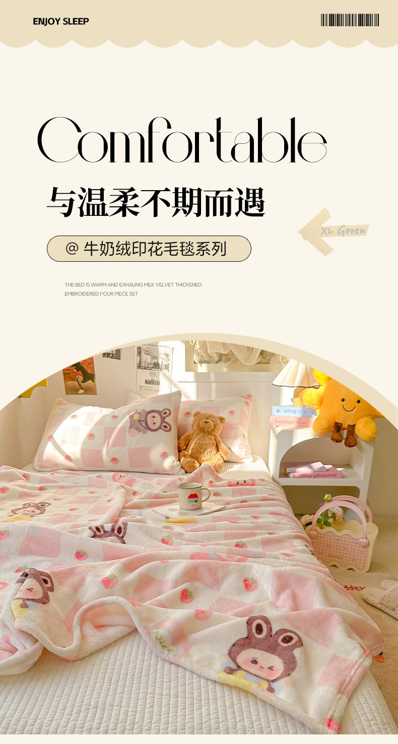 韩巢家纺 2025新款四季可用牛奶绒多功能毛毯 奶糖拉布布