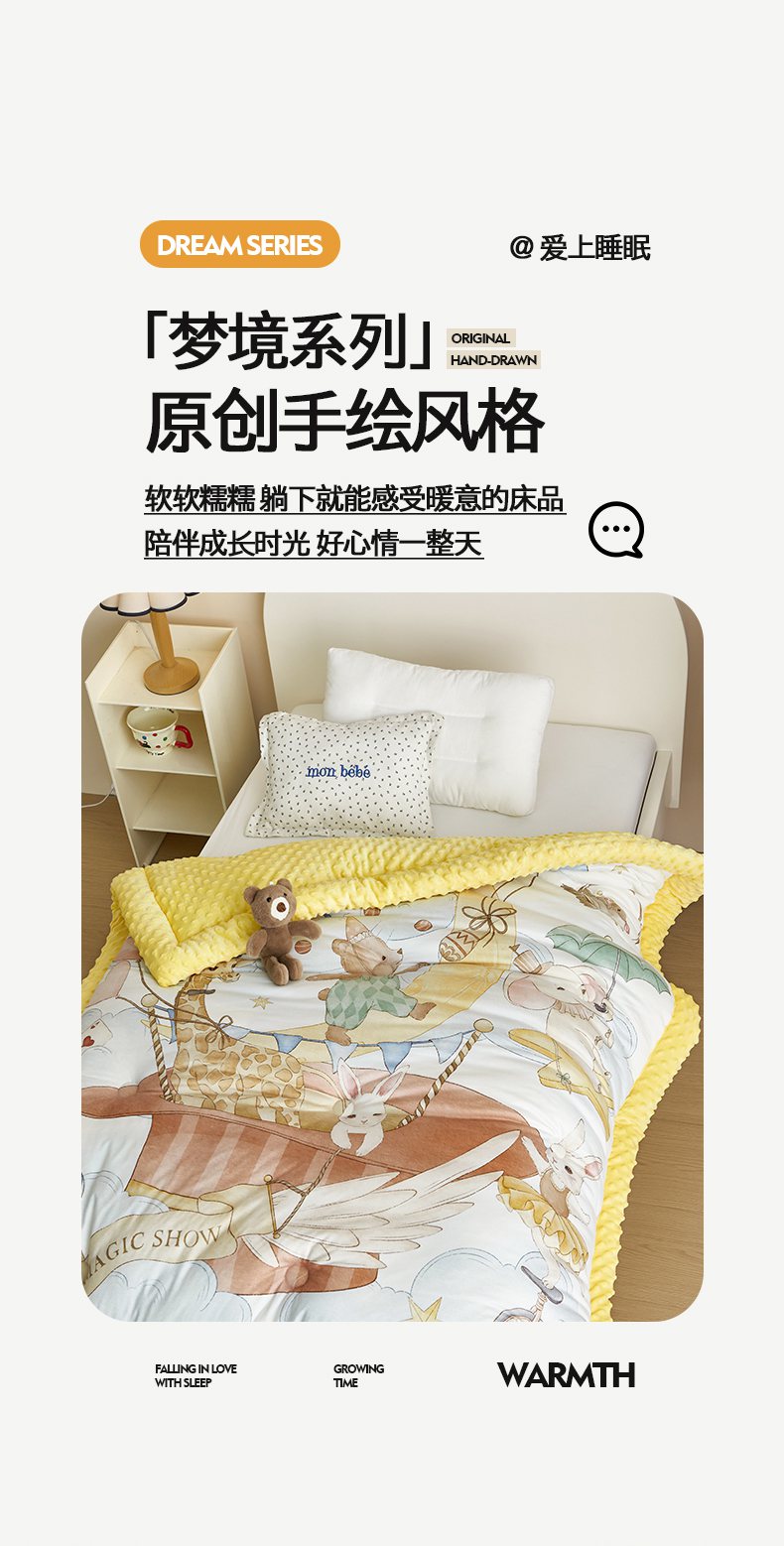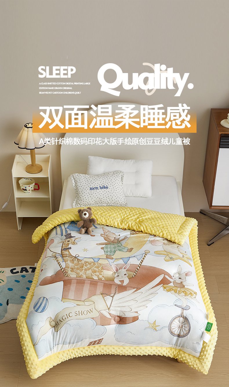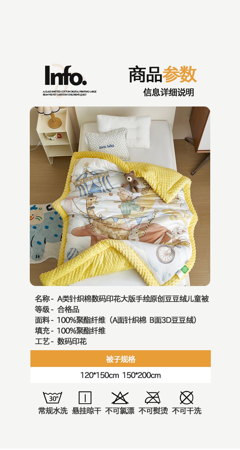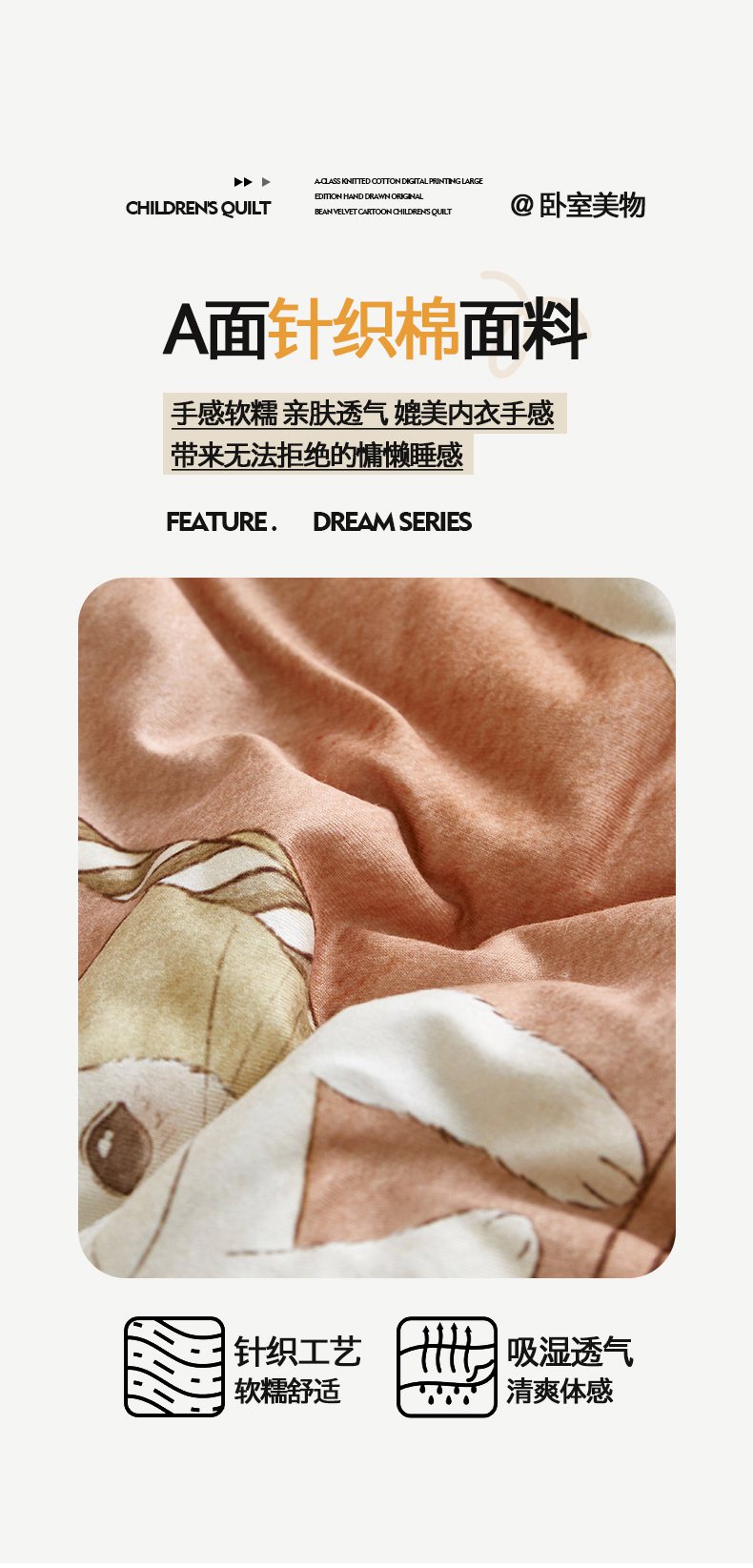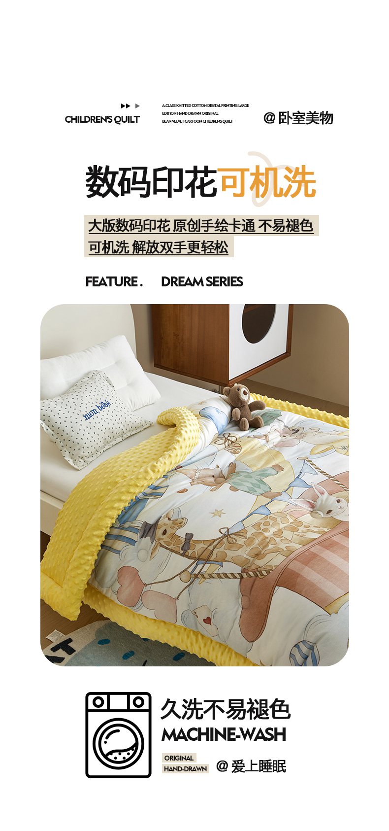 (总)荷马之梦 2025新款A类小版针织棉数码印花手绘原创豆豆绒被芯儿童被子春秋被冬被-梦境,精灵小兔,恐龙之家,跑跑小熊猫B,糖果女孩,小王子
