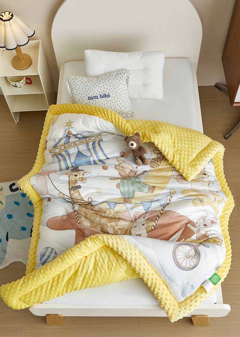 (总)荷马之梦 2025新款轻芯系列-A类双层纱纯棉印花贴布绣卡通被子春秋被冬被儿童安抚被,乖小兔,酷小熊,快乐熊猫,音乐小象
