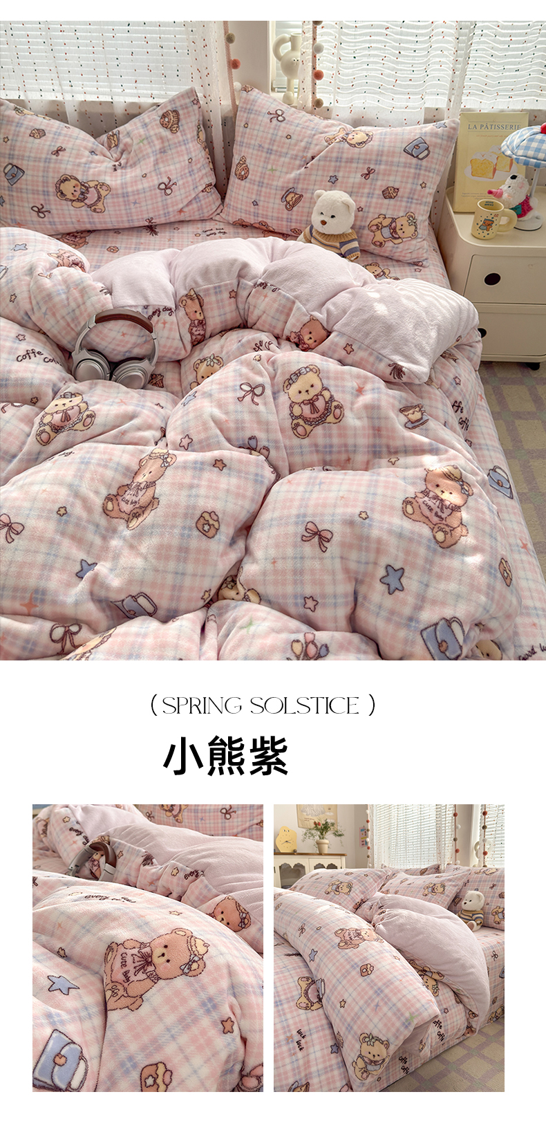 • 91家纺网 家纺一手货源 找家纺 沐芷 2025加厚A类牛奶绒被套被罩高克重加厚珊瑚绒四件套卡通简约加绒单被套 【绒】小熊紫