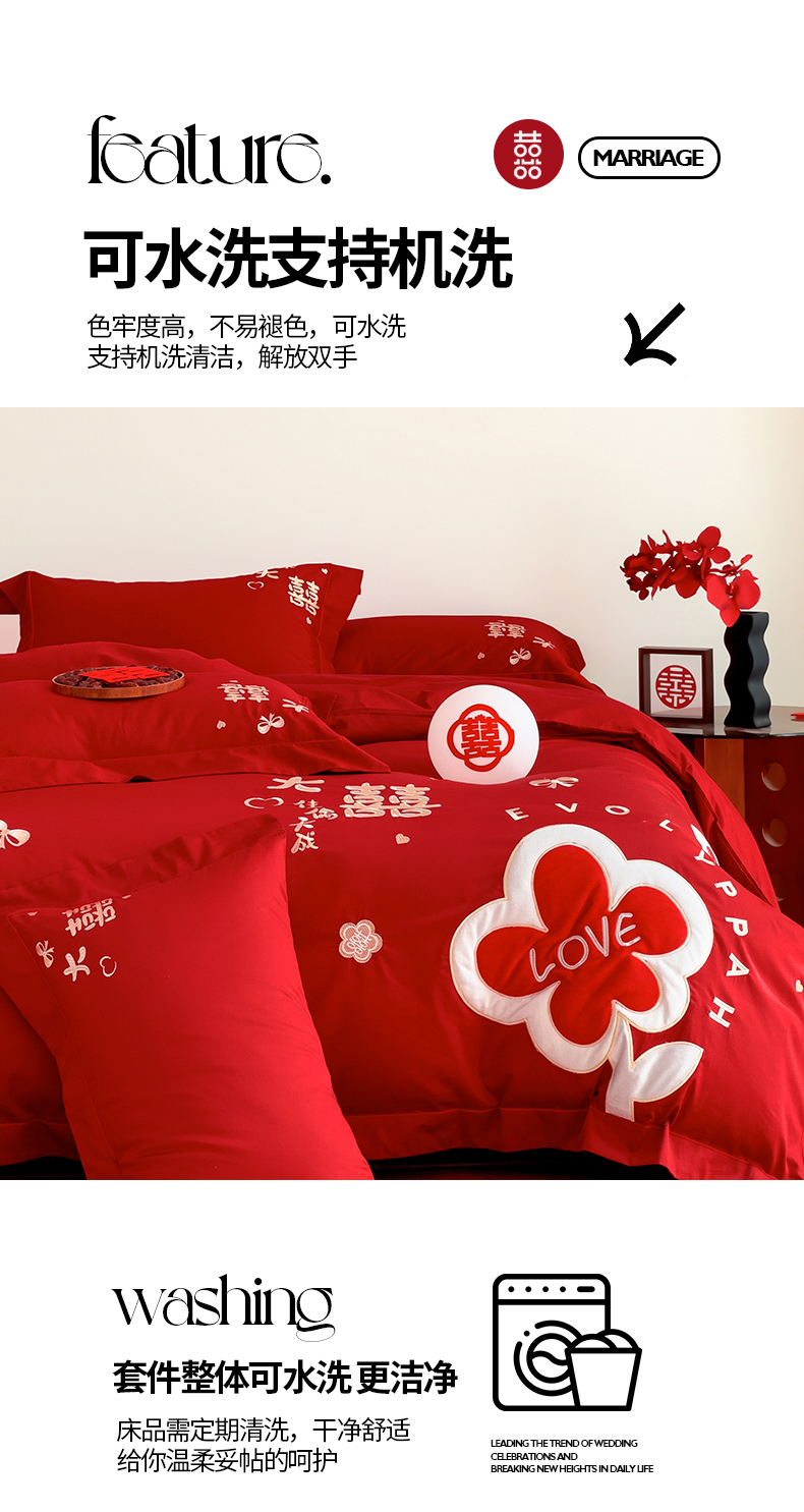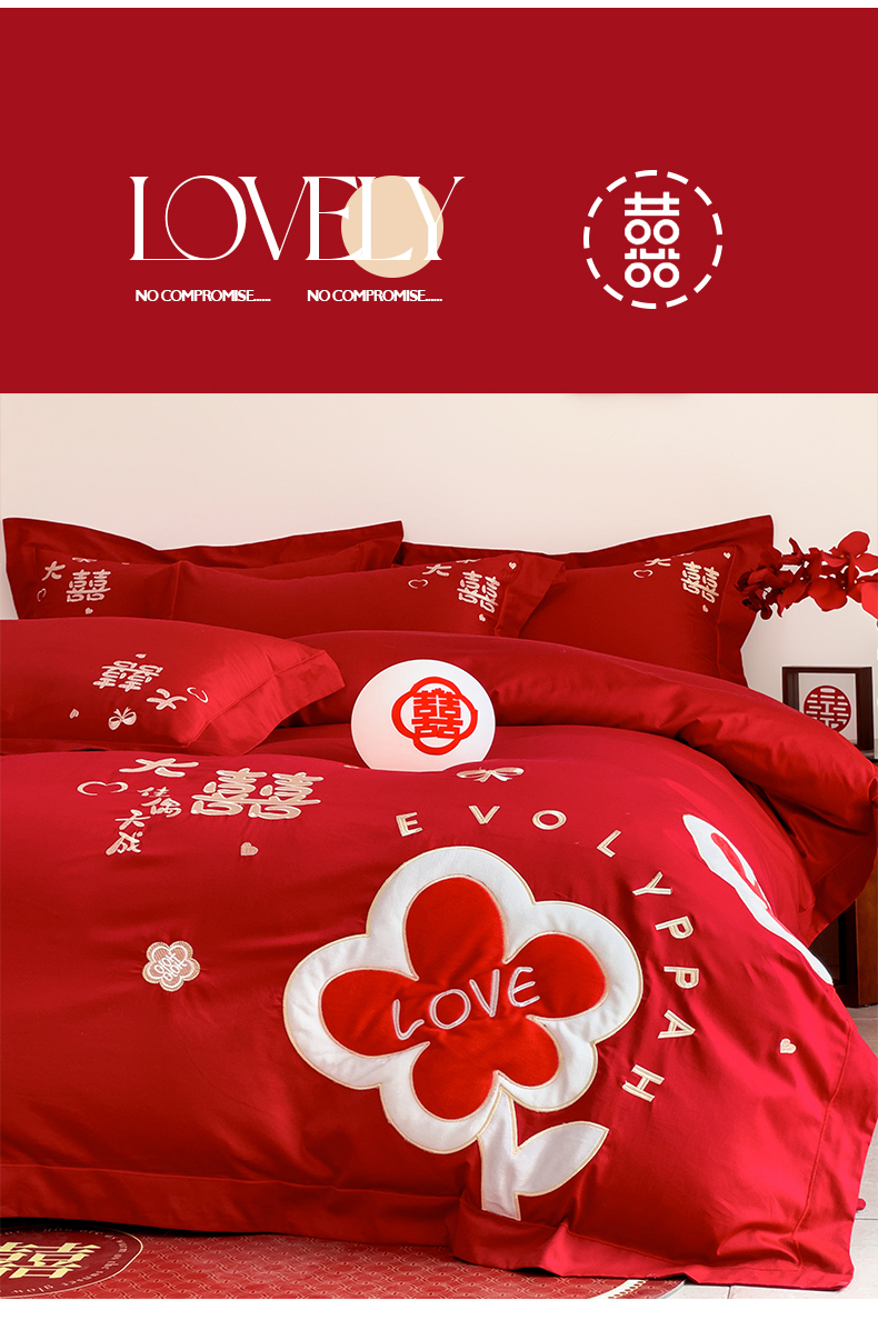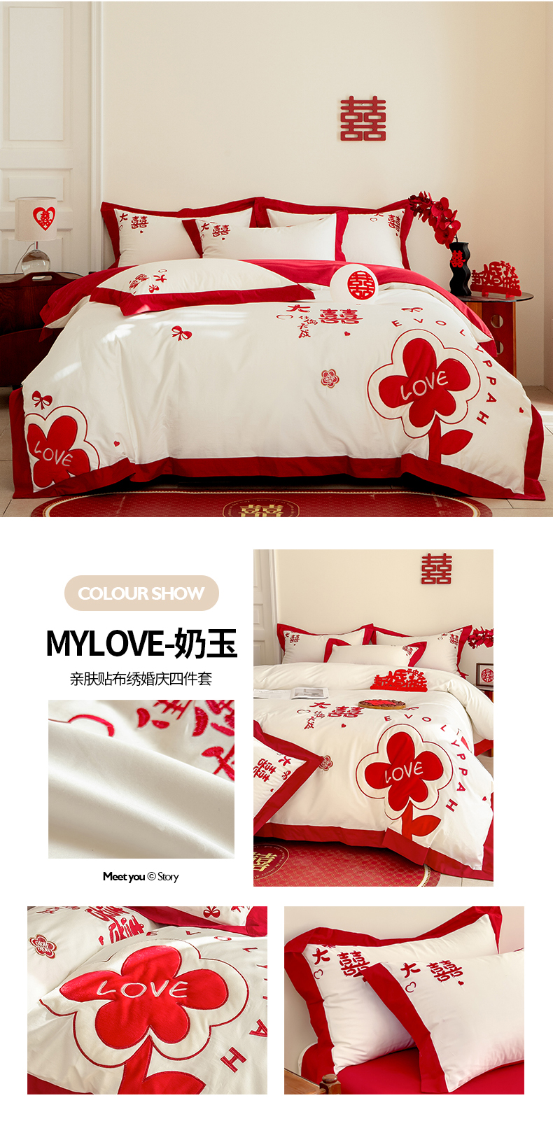 当前位置: 91家纺网 > 商品网购 > 床品套件 > 四件套 > 其它四件套 > (总)置顶家纺 2024新款婚庆亲肤贴布绣四件套-Mylove