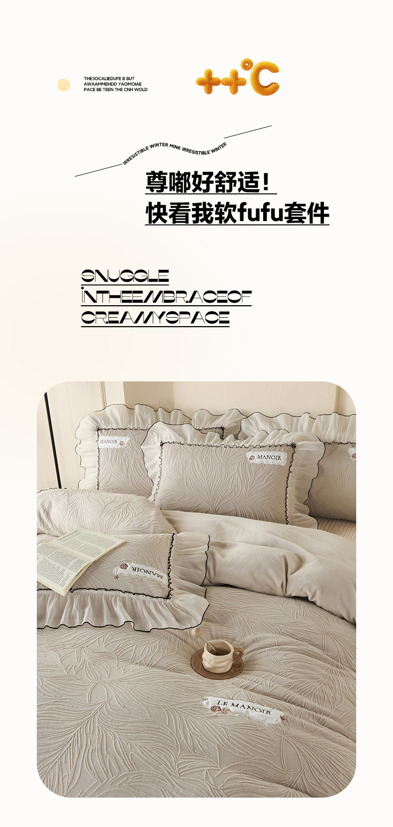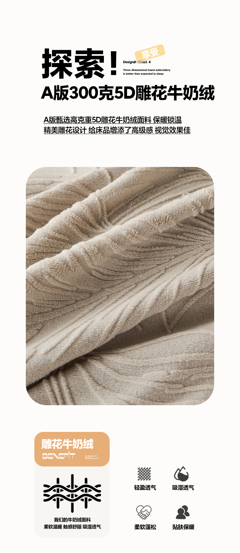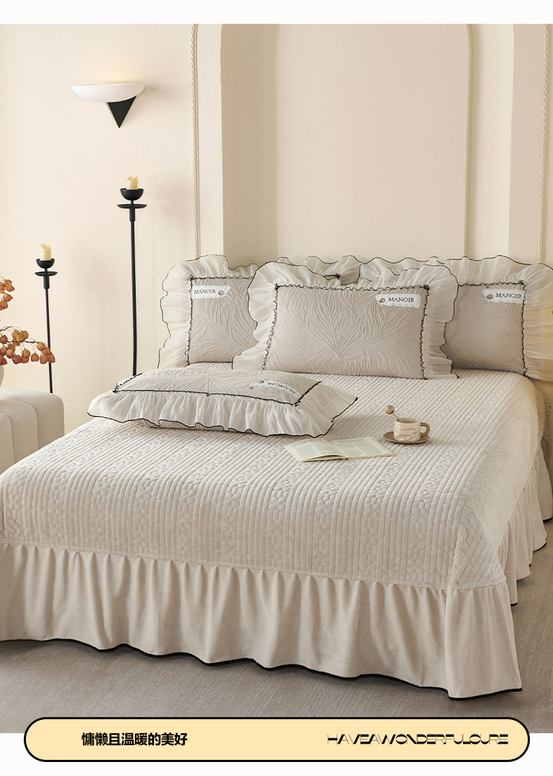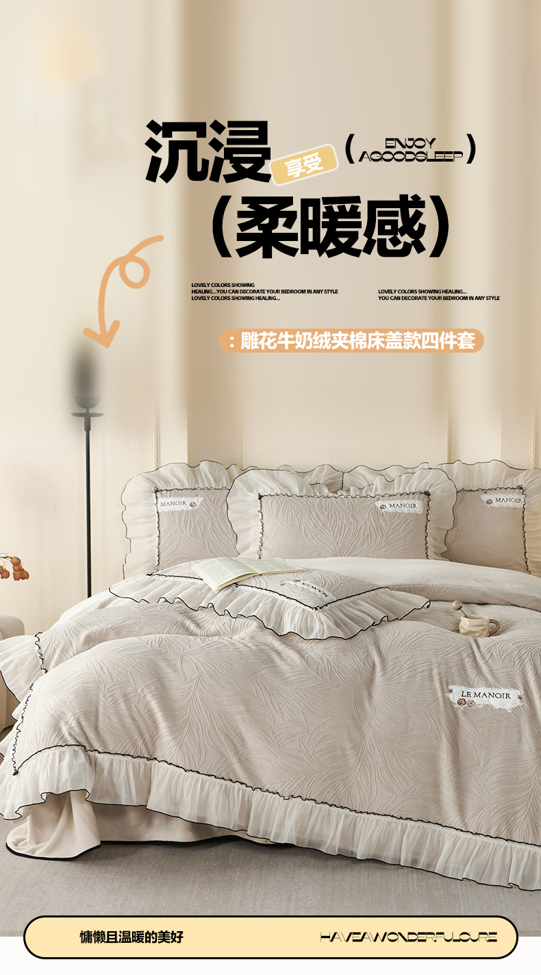(总)青竹苑 2025新款雕花牛奶绒夹棉床盖款四件套,森野-幻紫,森野-暖白,森野-柔粉,森野-浅灰