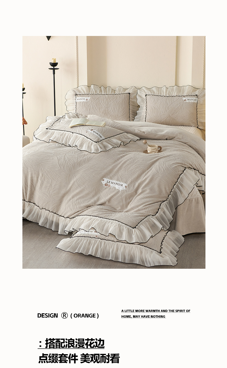 商品名称:青竹苑 2025新款雕花牛奶绒夹棉床盖款四件套 森野-浅灰