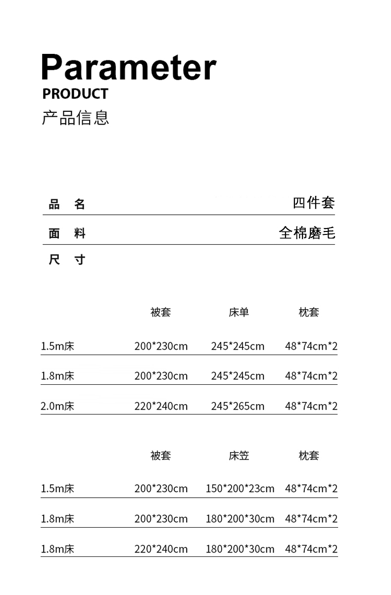 1.5m床笠款四件套 | ¥200.00 |