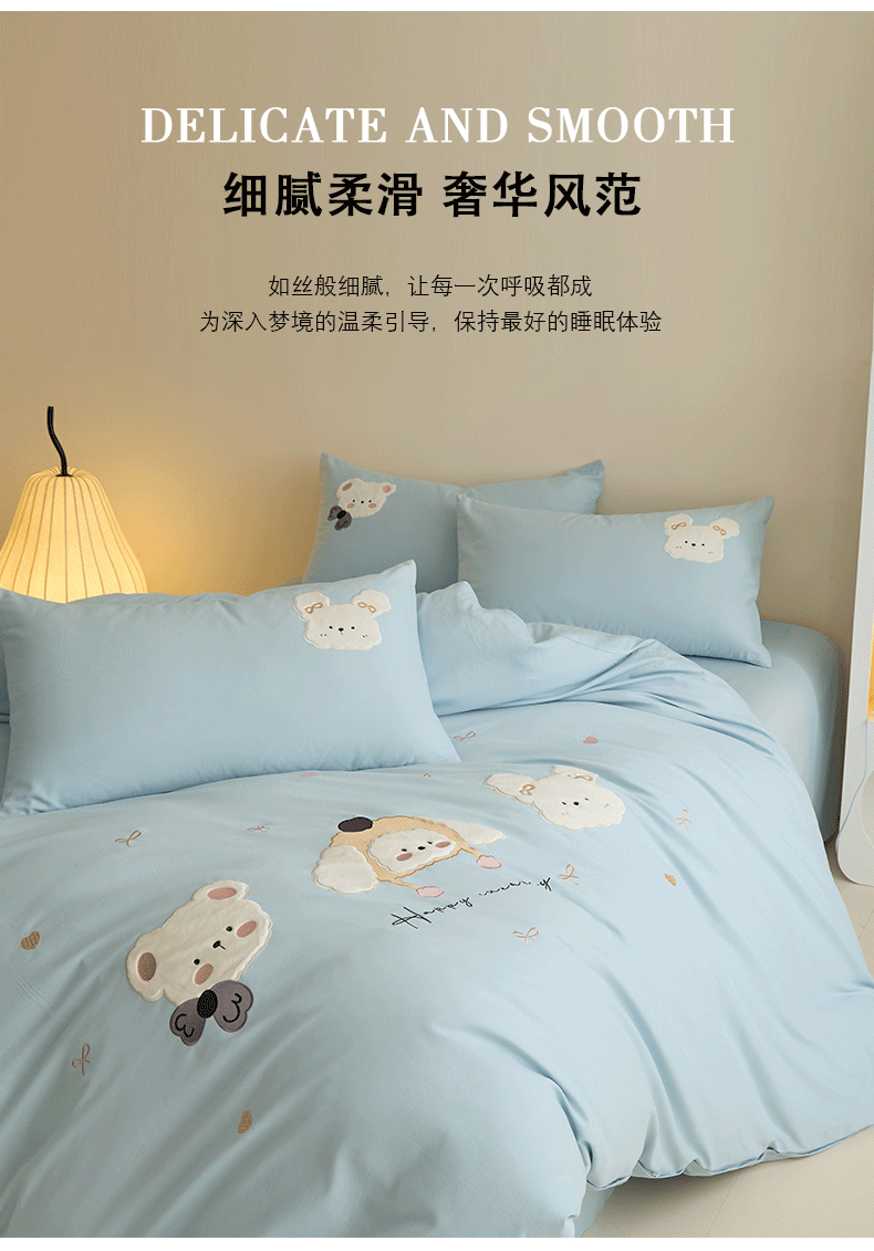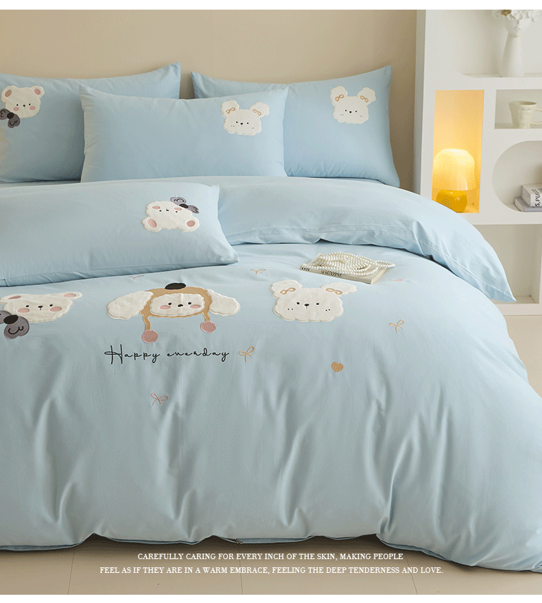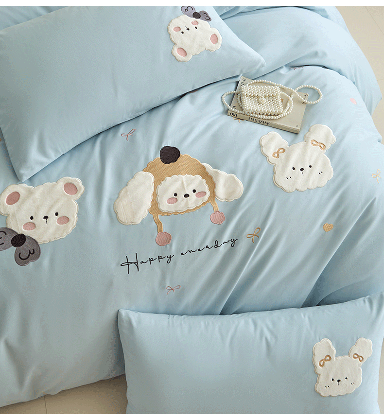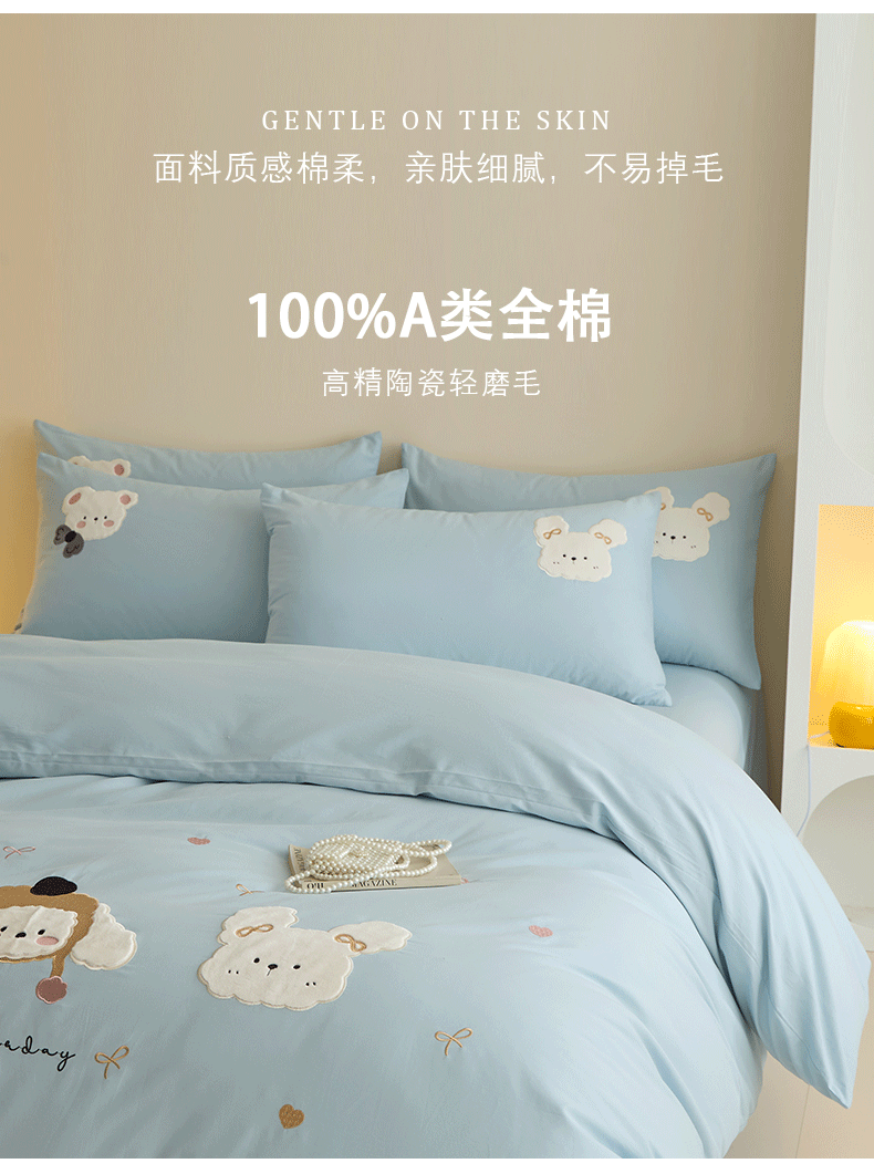 当前位置: 91家纺网 > 商品网购 > 床品套件 > 四件套 > 全棉普通四件套 > 618家纺 2025新款50S100支全棉纯棉萌宠乐园系列四件套 萌宠乐园-蓝