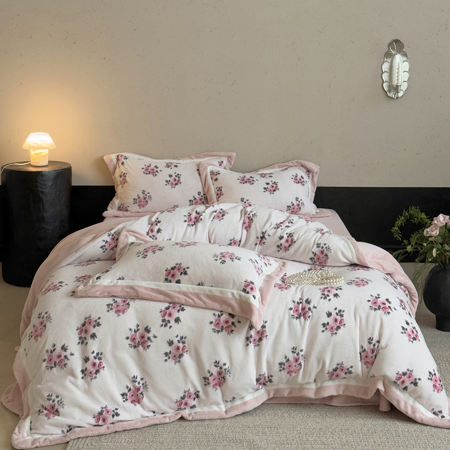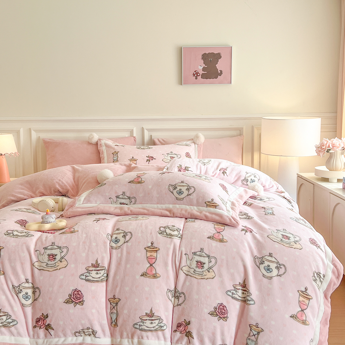 商品名称:多乐娜 2025新款高克重260g全消光牛奶绒数码印花法式油画风高端款四件套 (会员-20)控价最低368起 粉粉泡芙