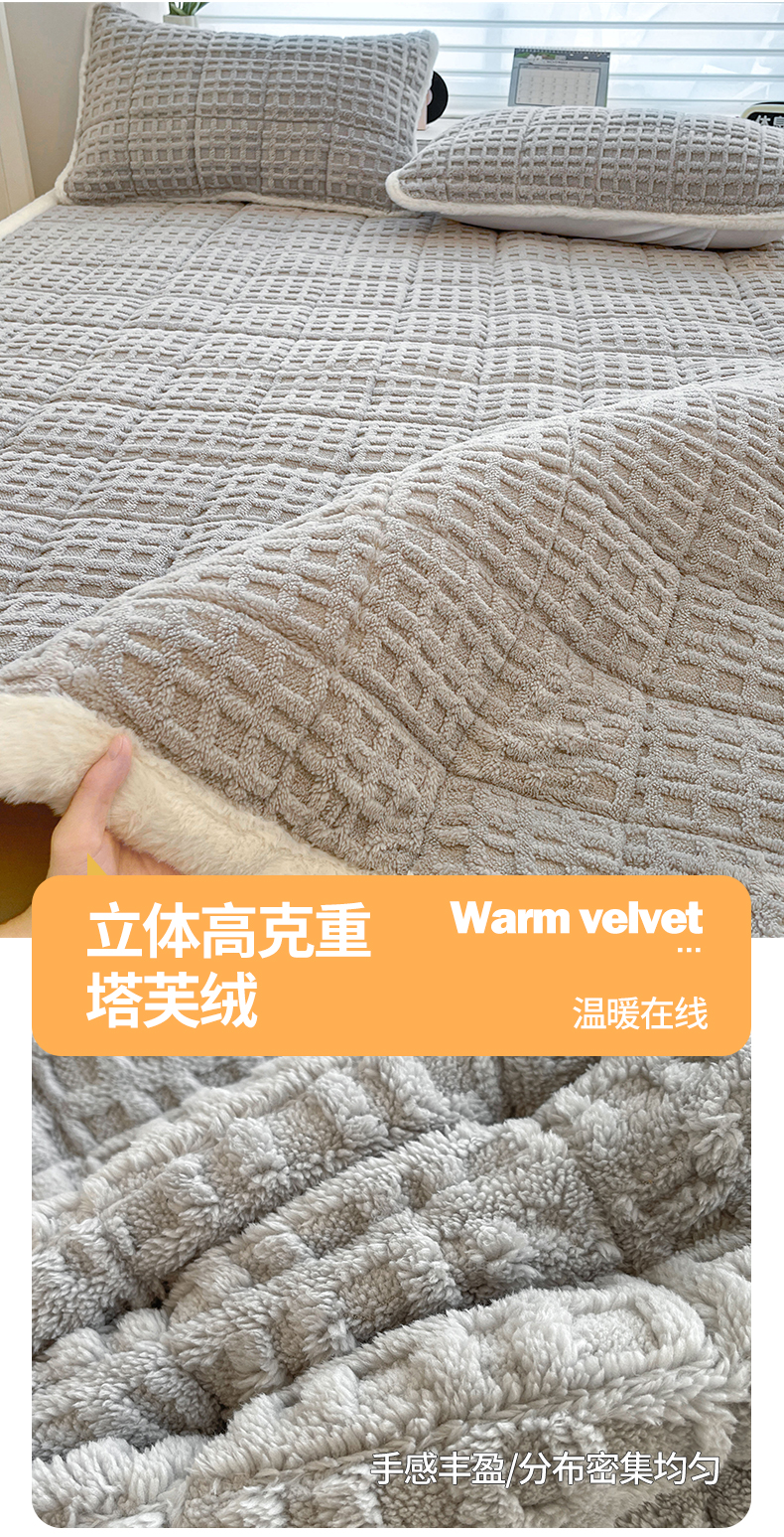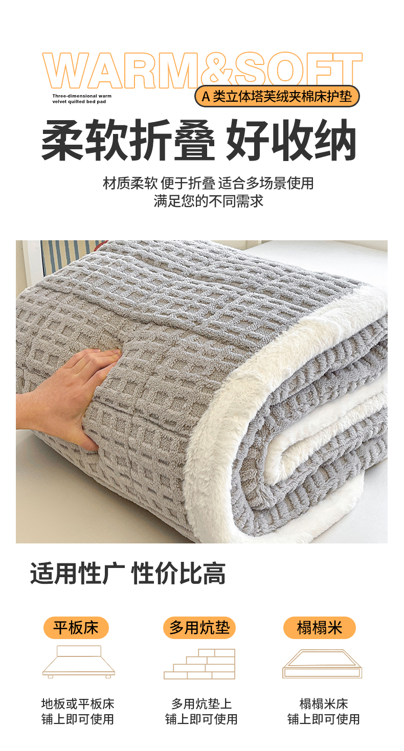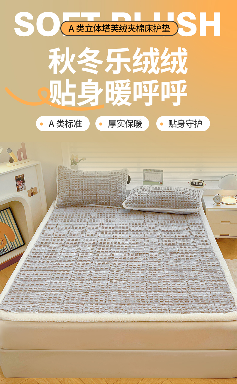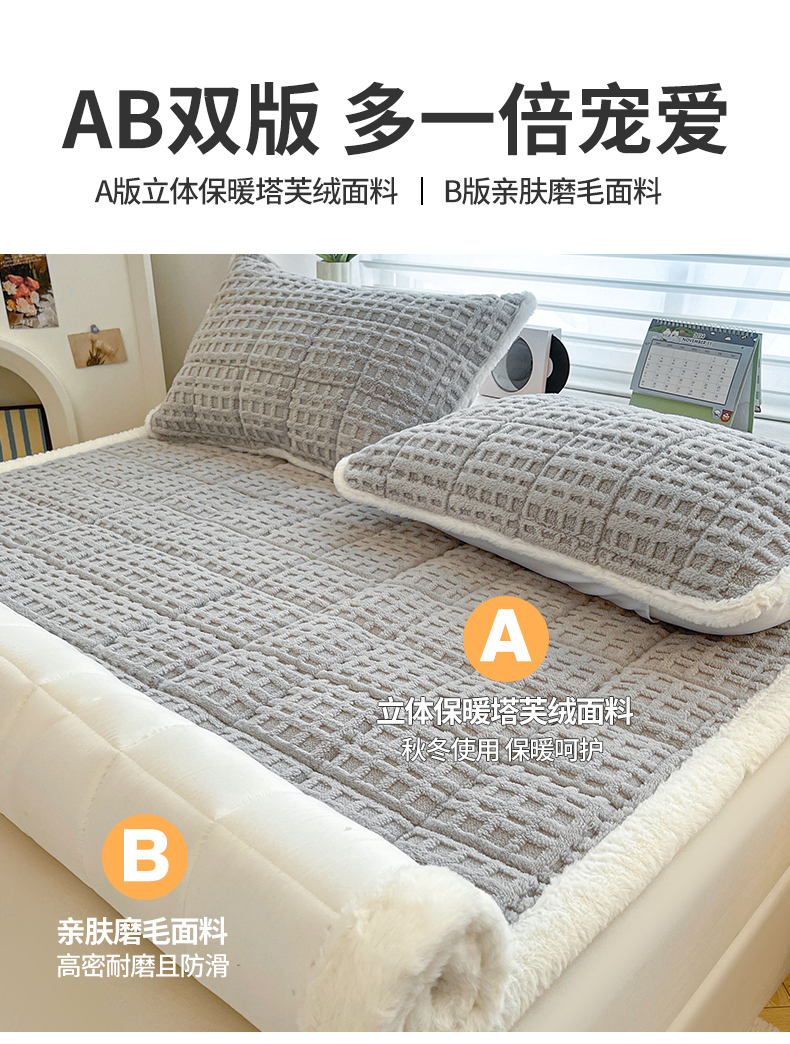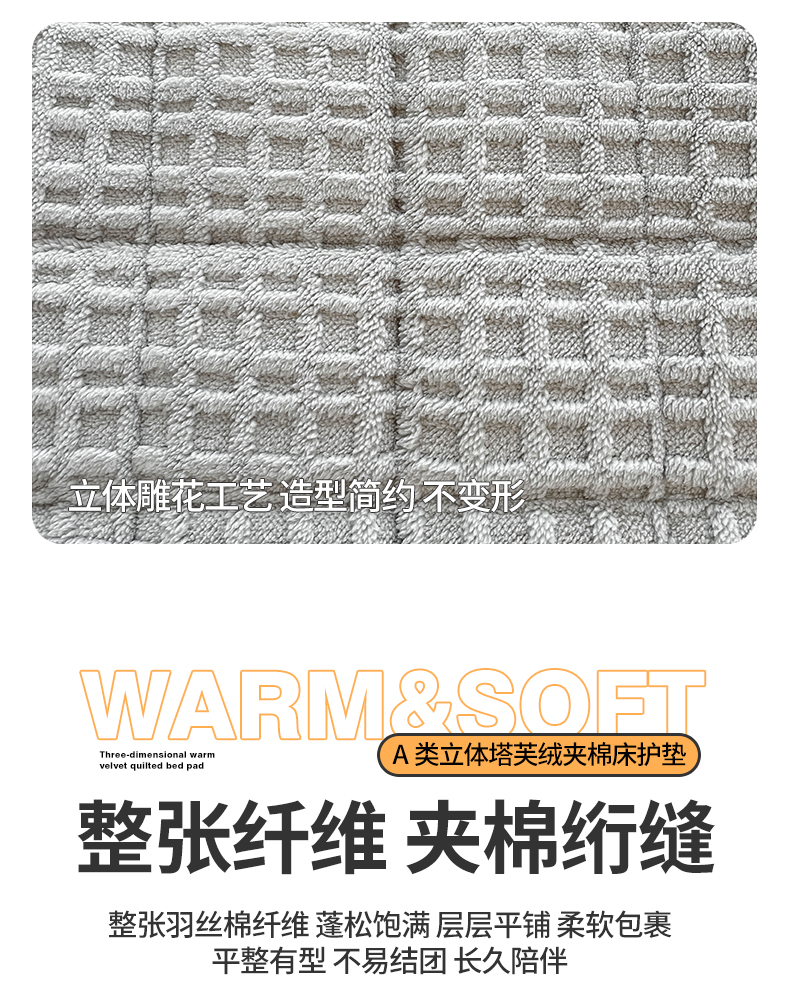 商品名称:予梦家纺 2025新款加厚塔芙绒床垫床褥床护垫(带卖点图和买家秀) 华夫格 星灰