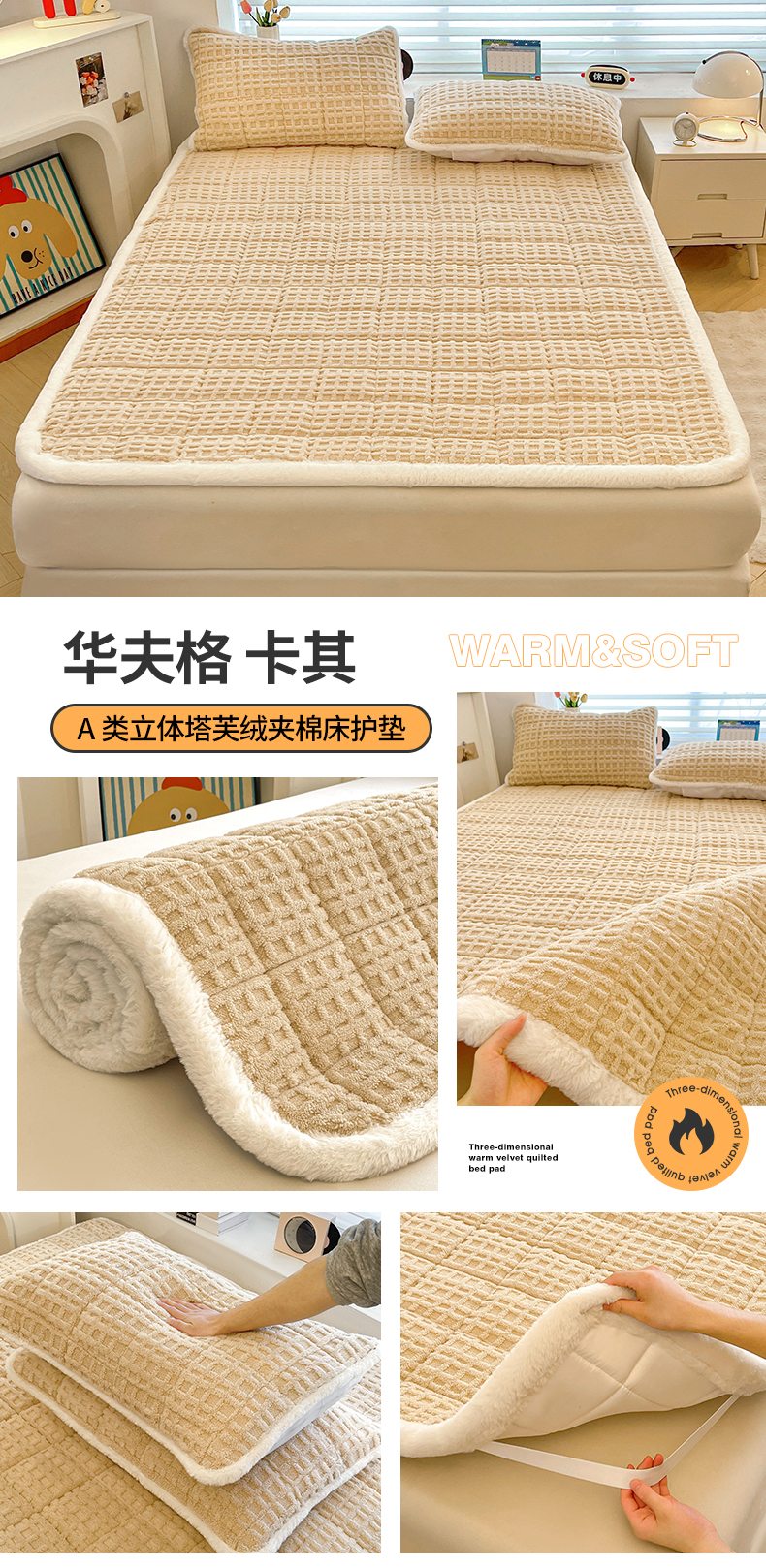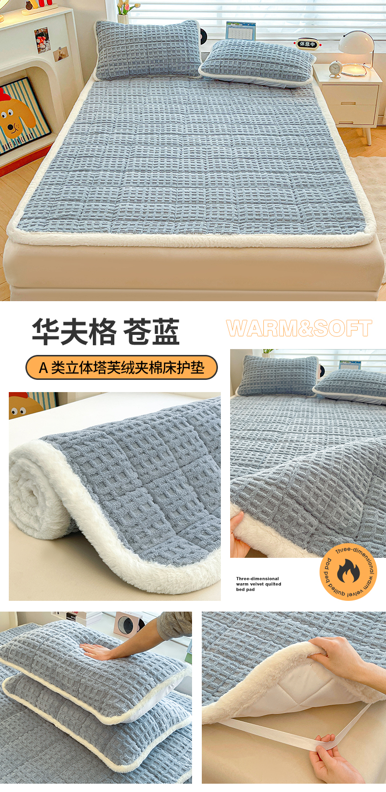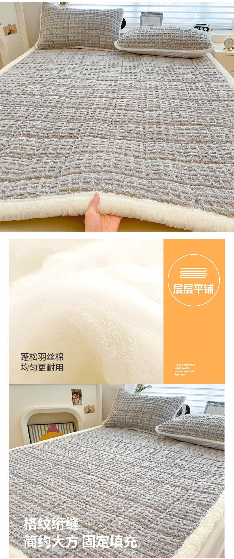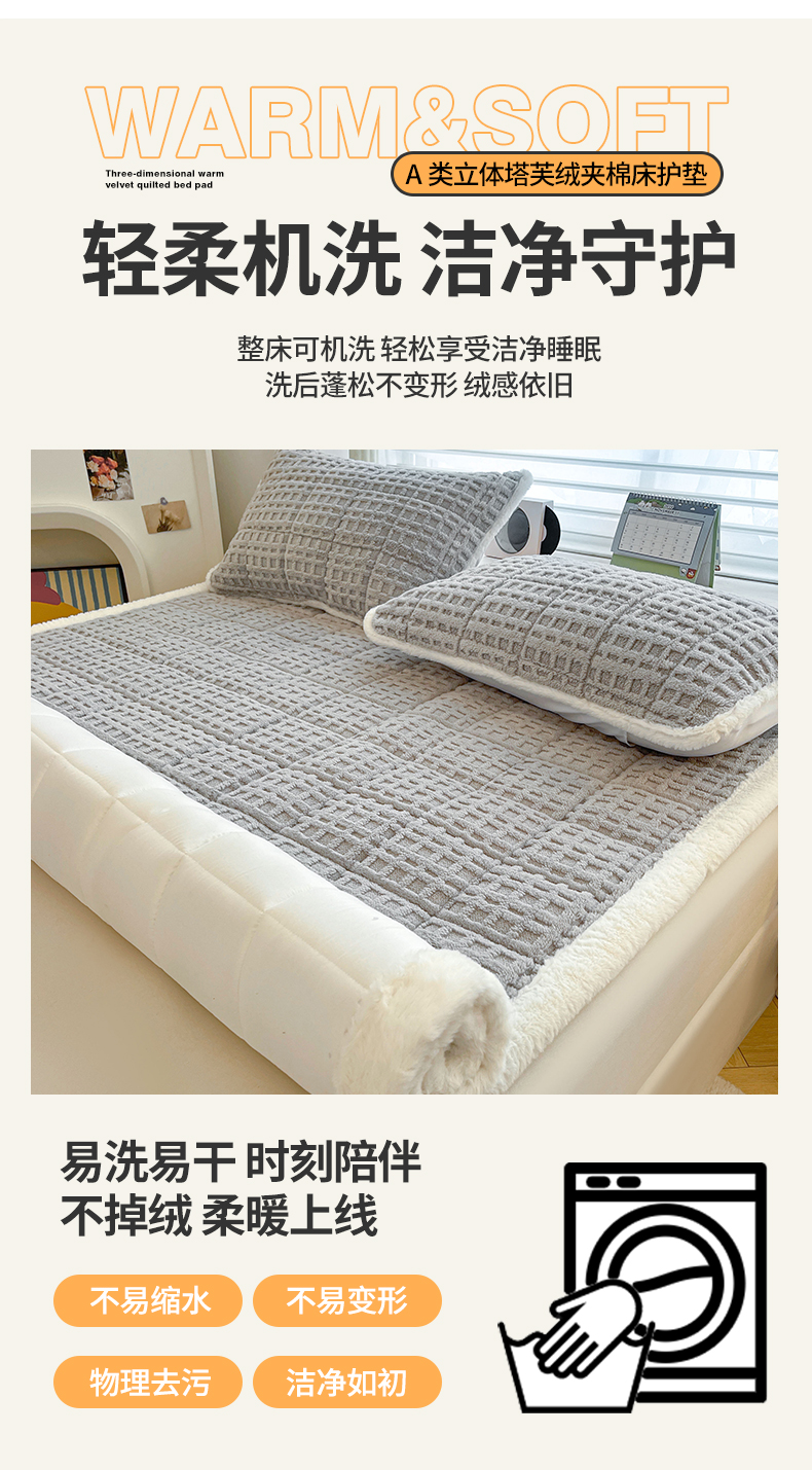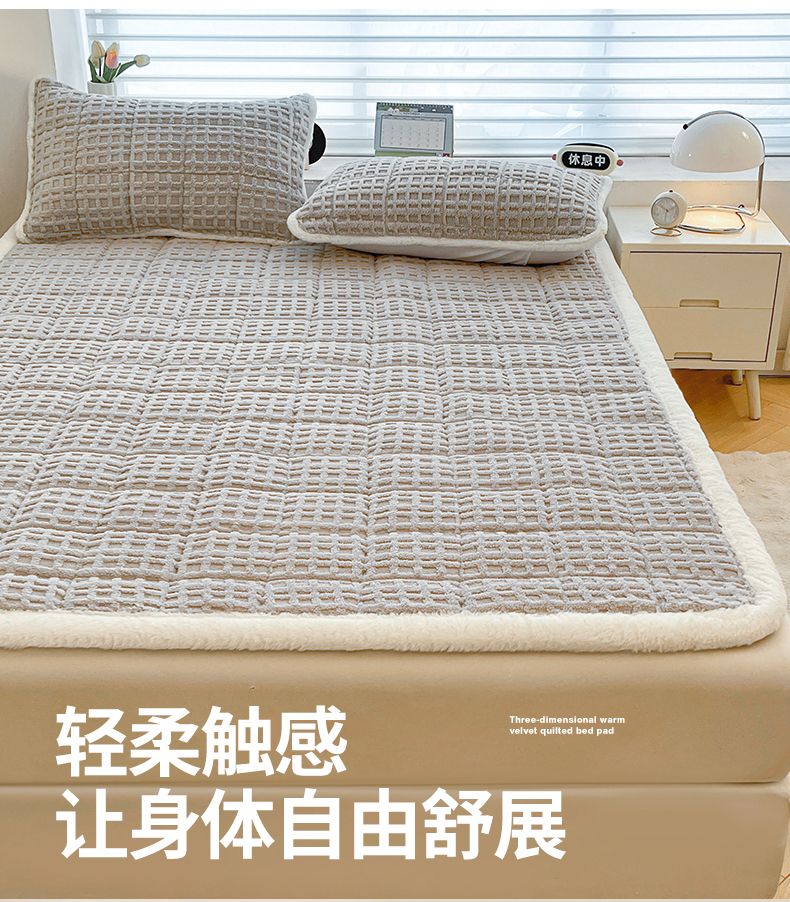 商品名称:予梦家纺 2025新款加厚塔芙绒床垫床褥床护垫(带卖点图和买家秀) 华夫格 星灰