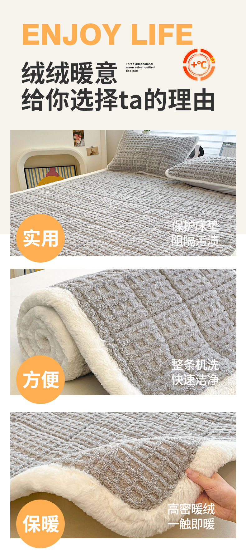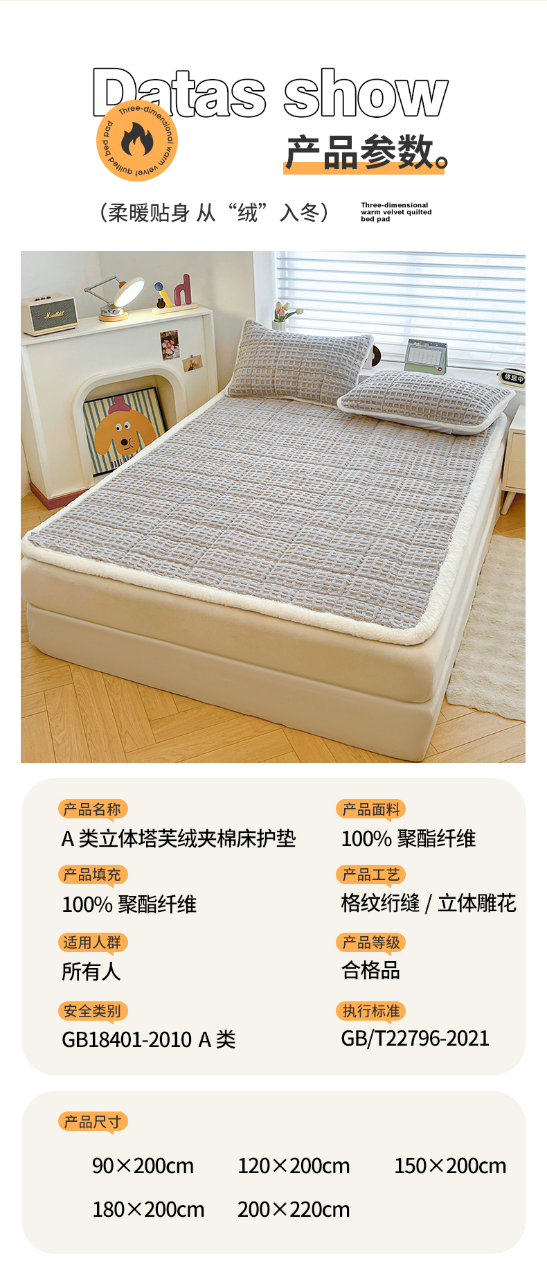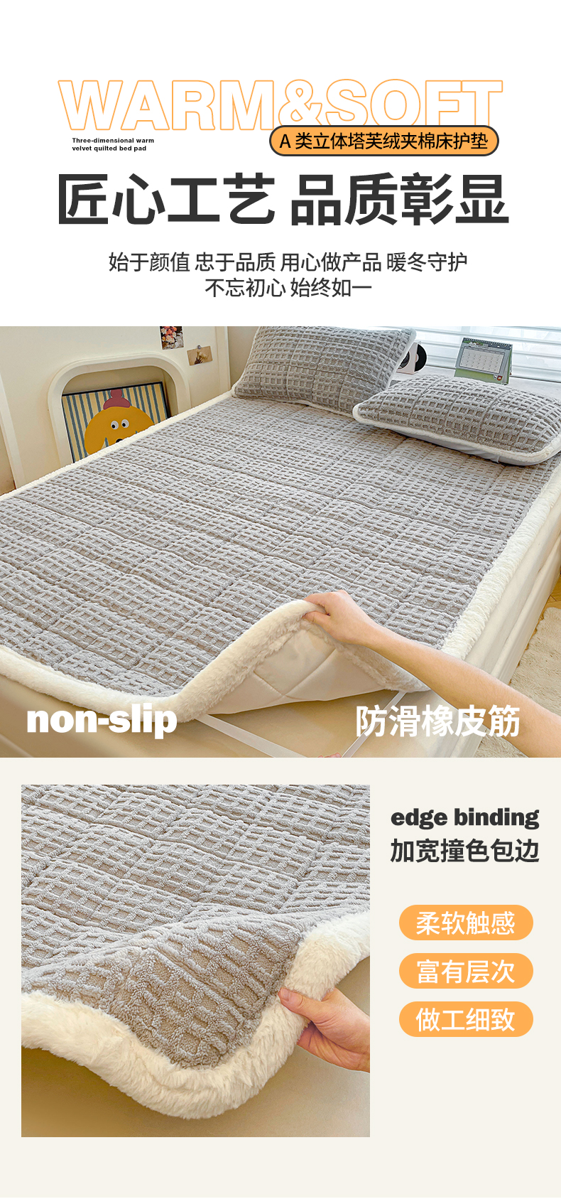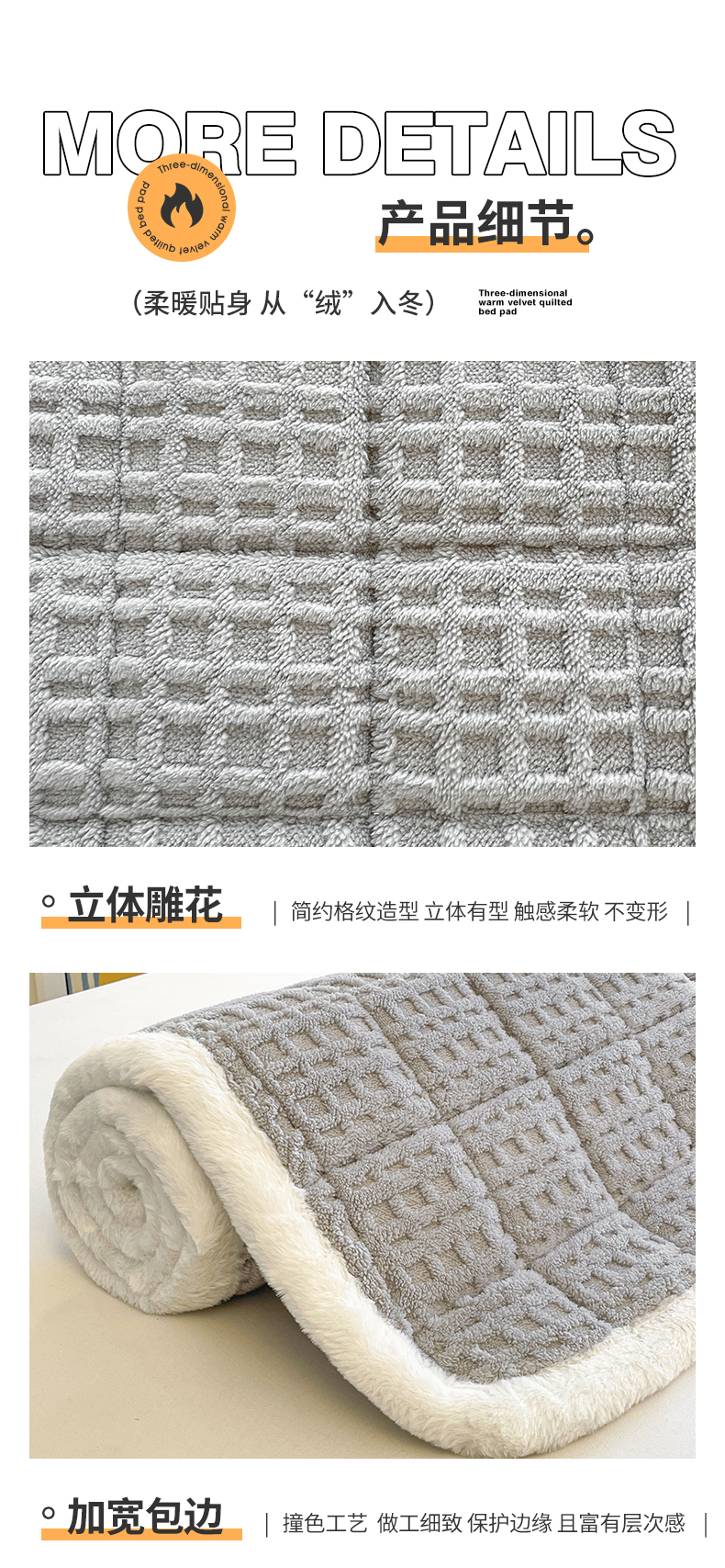 商品名称:予梦家纺 2025新款加厚塔芙绒床垫床褥床护垫(带卖点图和买家秀) 华夫格 星灰