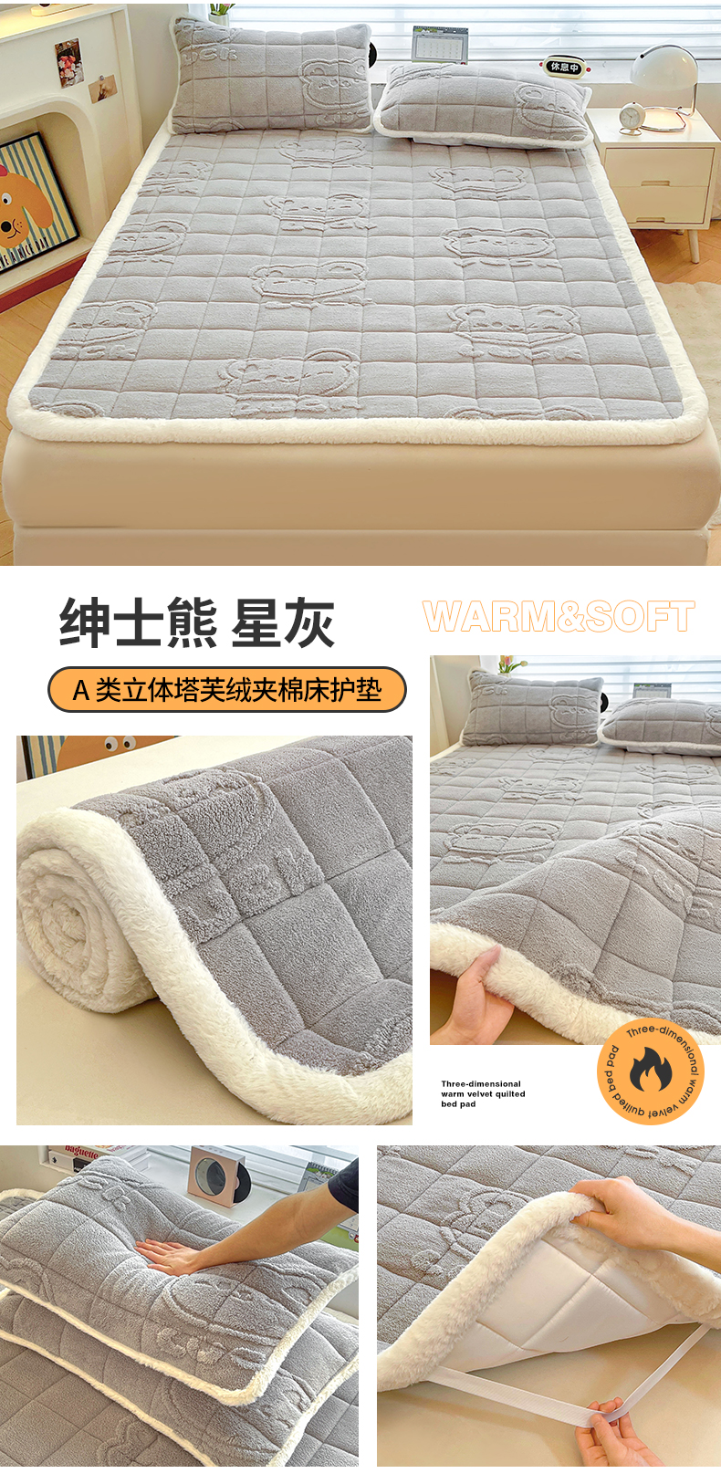 (总)予梦家纺 2025新款塔芙绒床护垫床垫保护套,萌萌熊 苍蓝,萌萌熊 果绿,萌萌熊 卡其,萌萌熊 星灰,星梦格 苍蓝,星梦格 果绿,星梦格 卡其,星梦格 星灰