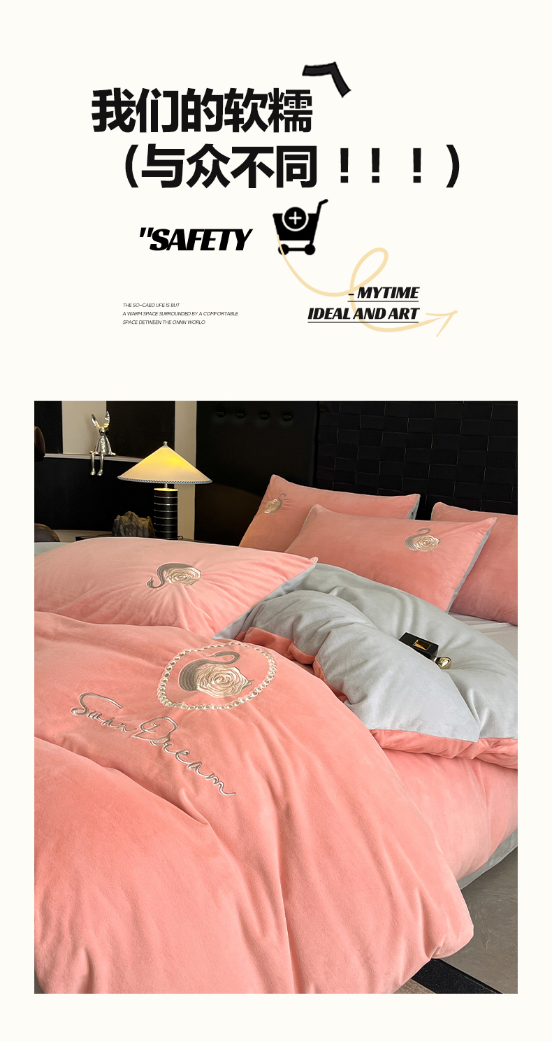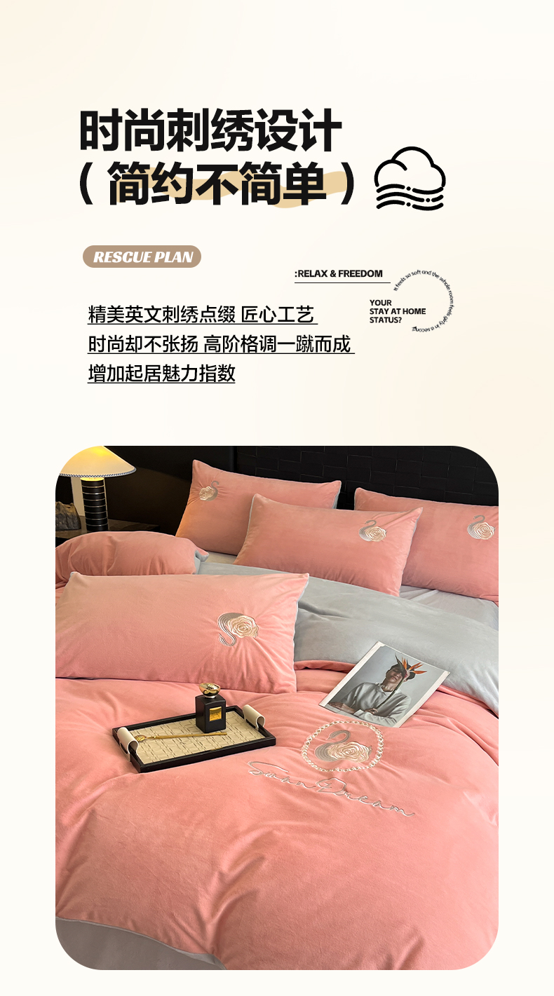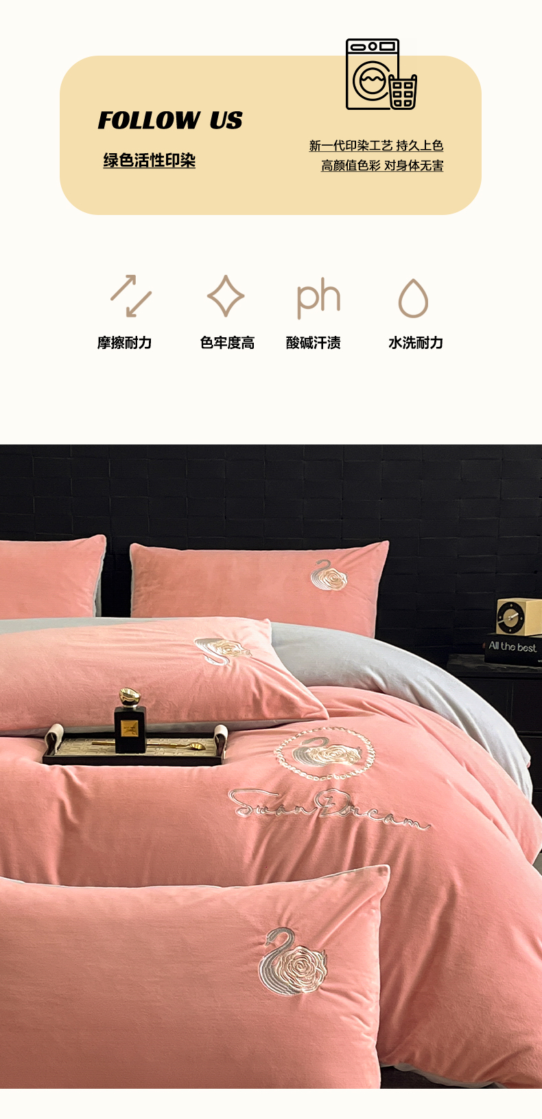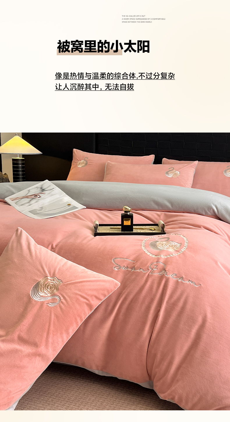 商品名称:如一 2025新款水晶绒刺绣天鹅系列四件套 天鹅-浅豆沙