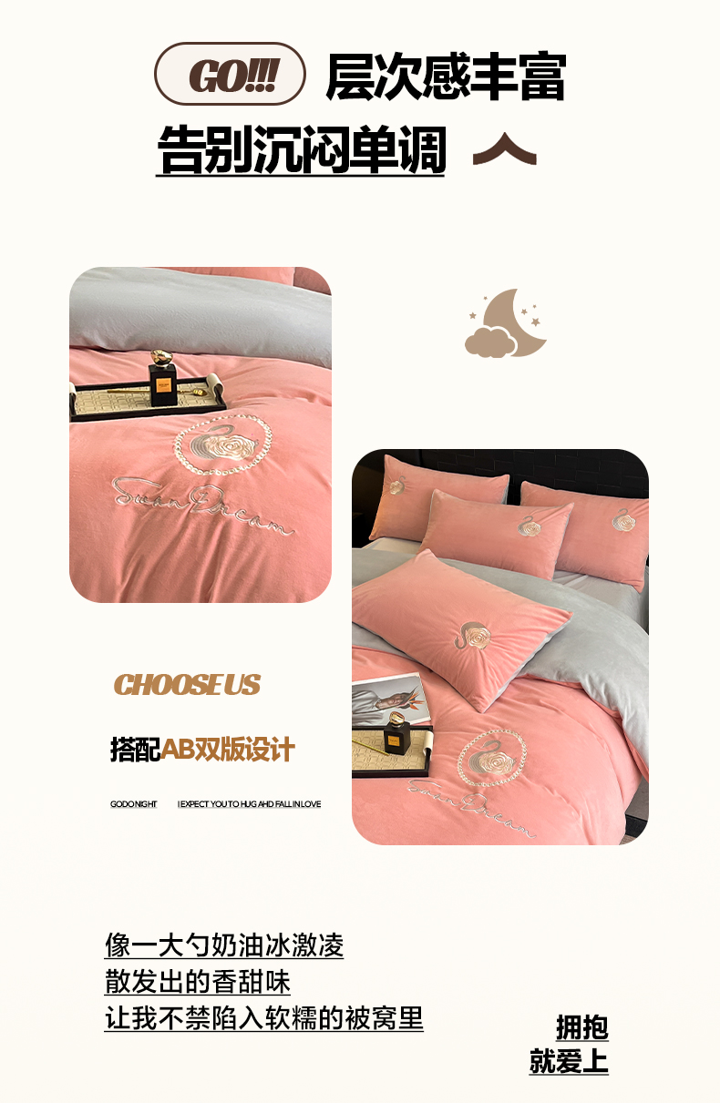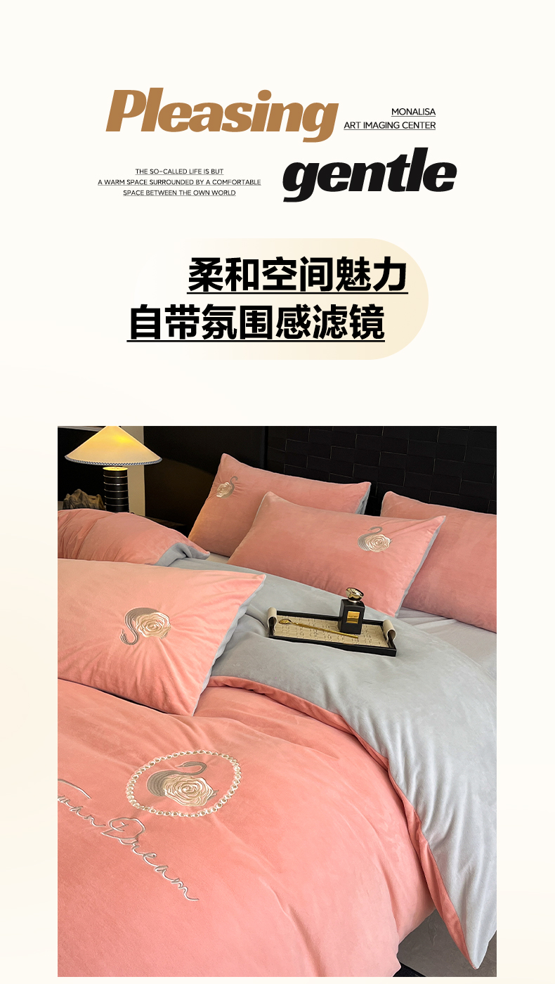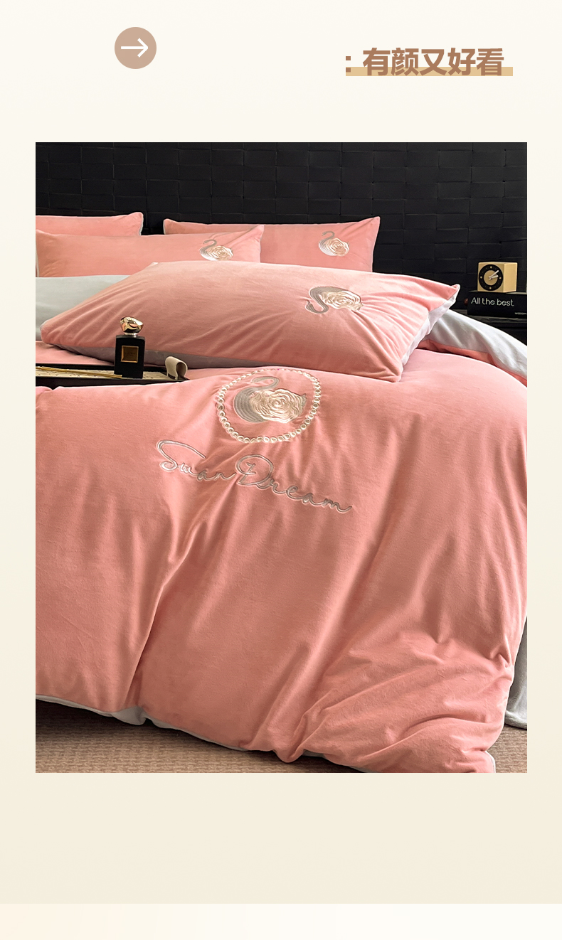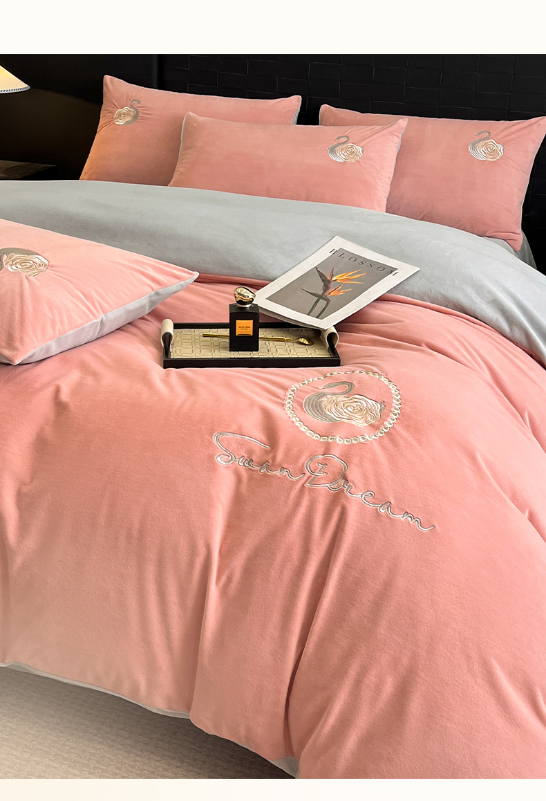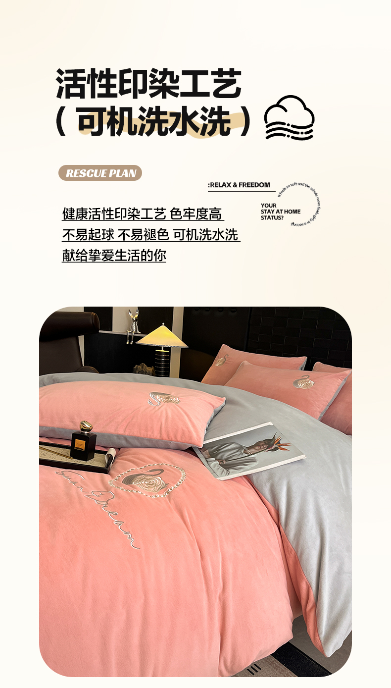 商品名称:如一 2025新款水晶绒刺绣天鹅系列四件套 天鹅-浅豆沙