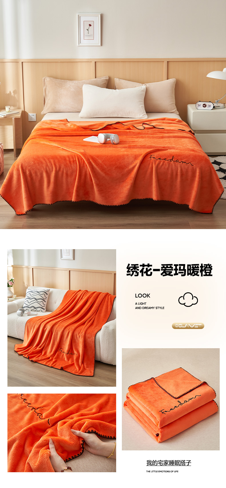 (总)艾佳 2025新款A类全高克重雕花烂花刺绣牛奶绒四件套-小H系列,小H爱玛橙,小H极简灰,小H奶油绿,小H奶油白,小H奶茶咖,小H梦幻蓝,小H蜜桃粉,小H豆藕粉