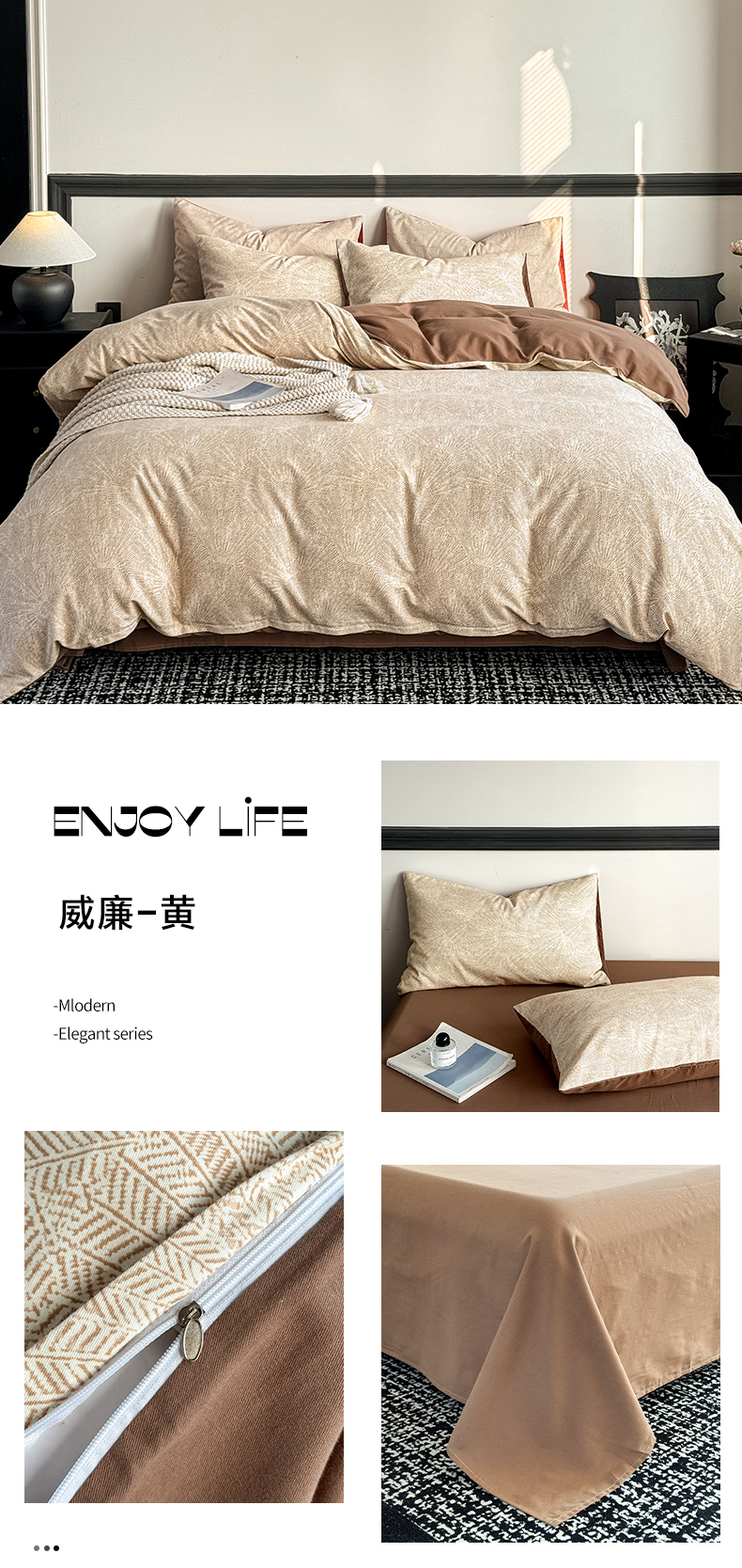 红淳家纺 2025新款全棉加厚磨毛四件套 叶语-咖