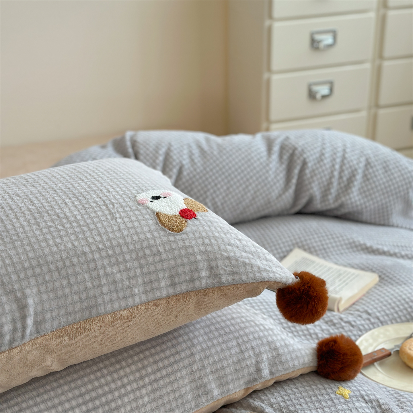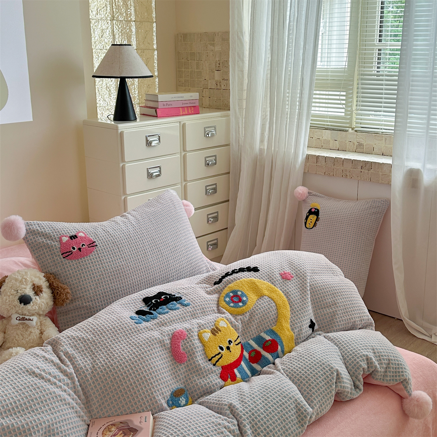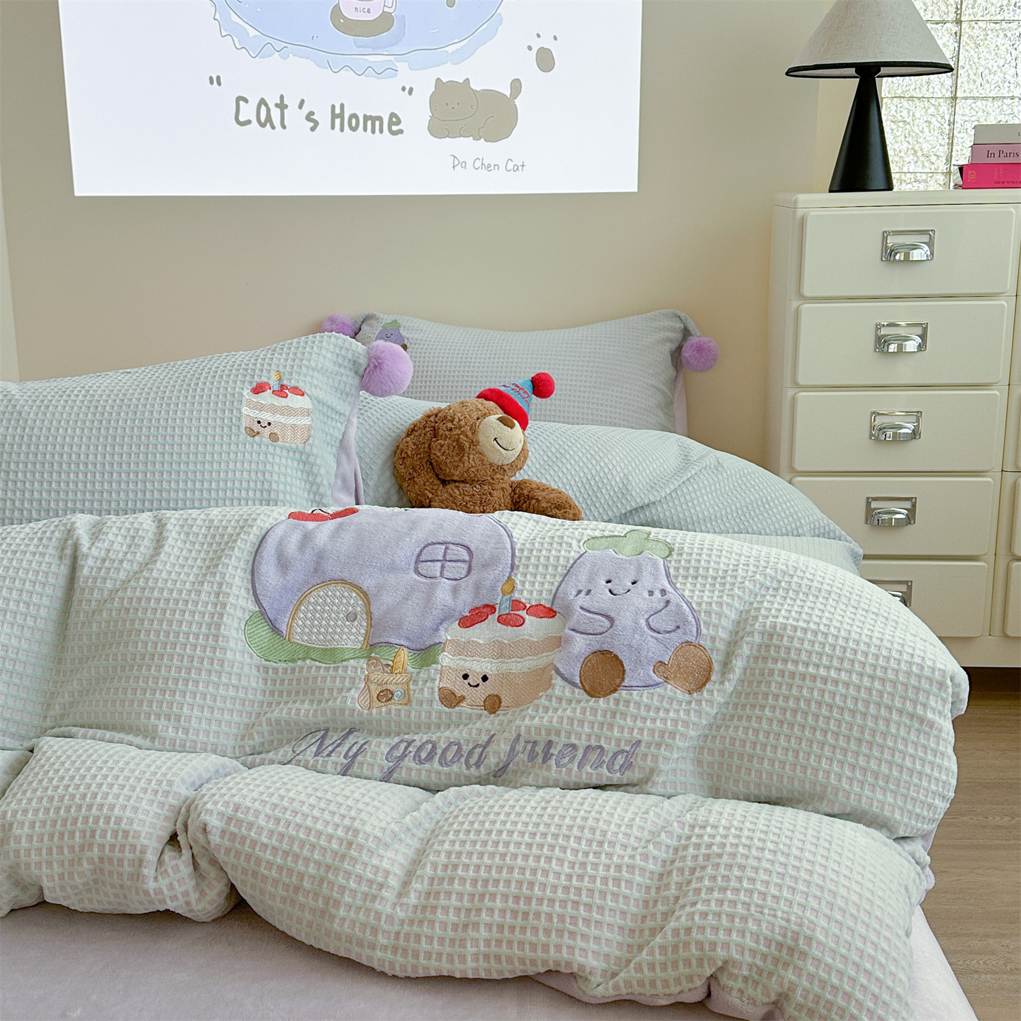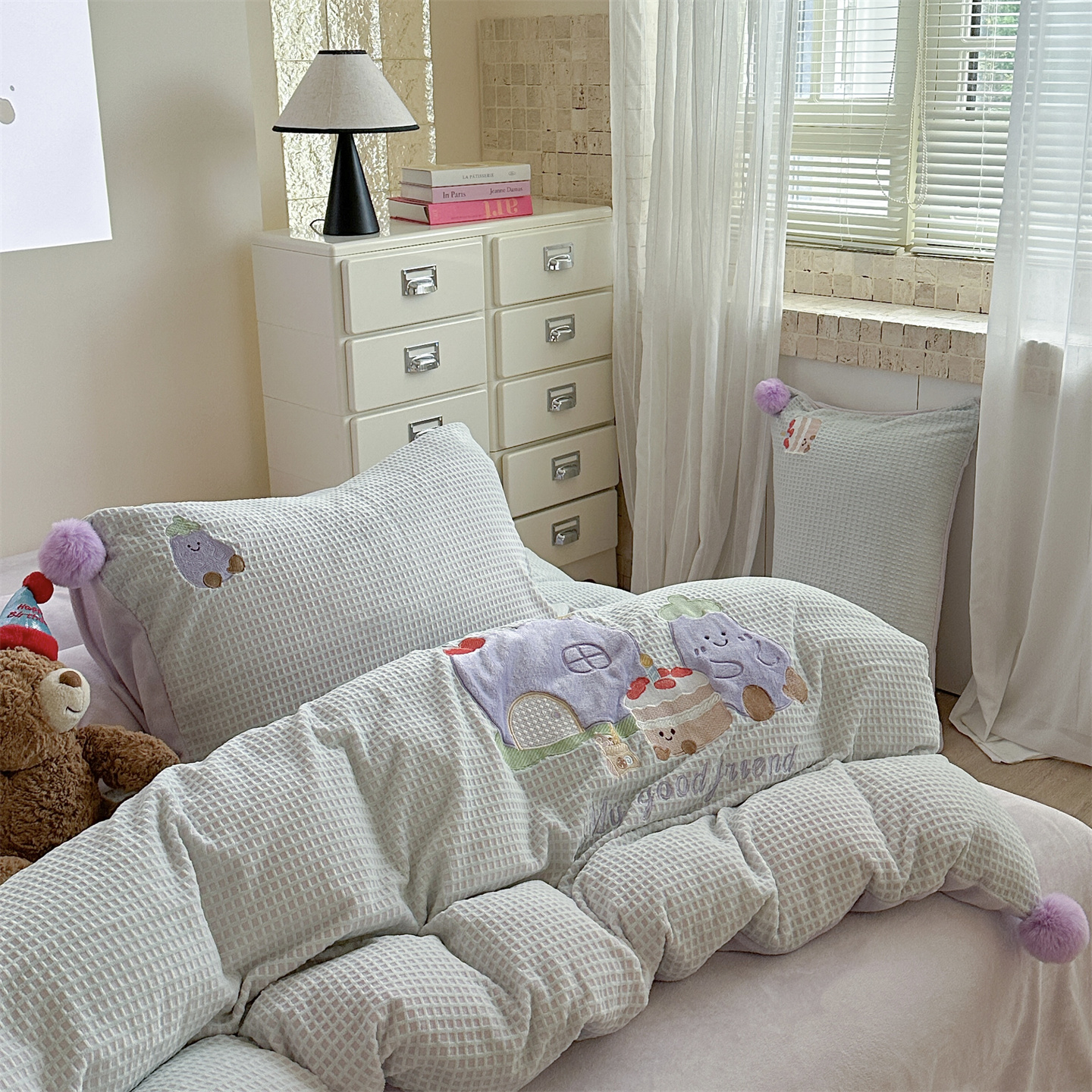 (总)柚子YOUTH 2025新款华夫格提花绒刺绣四件套