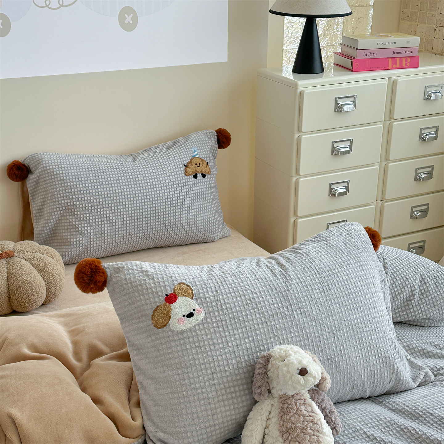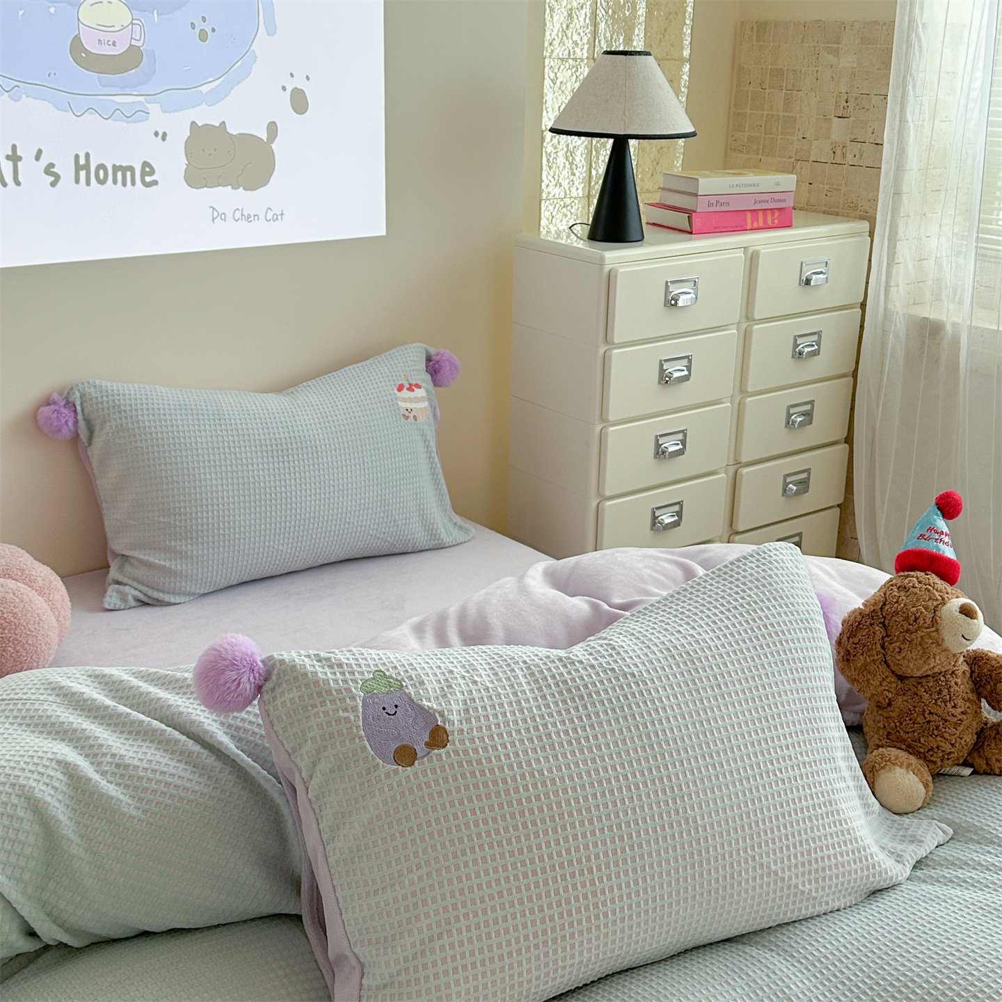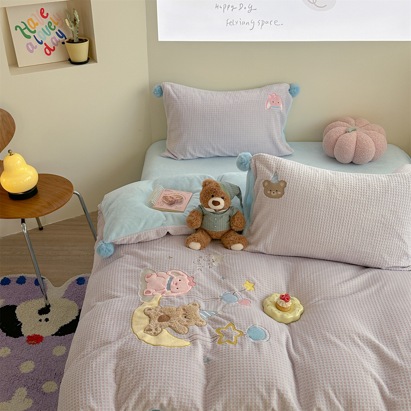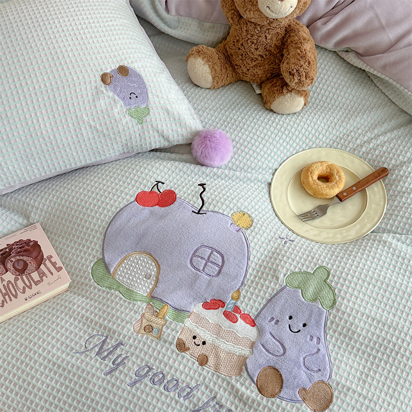 (总)柚子YOUTH 2025新款华夫格提花绒刺绣四件套