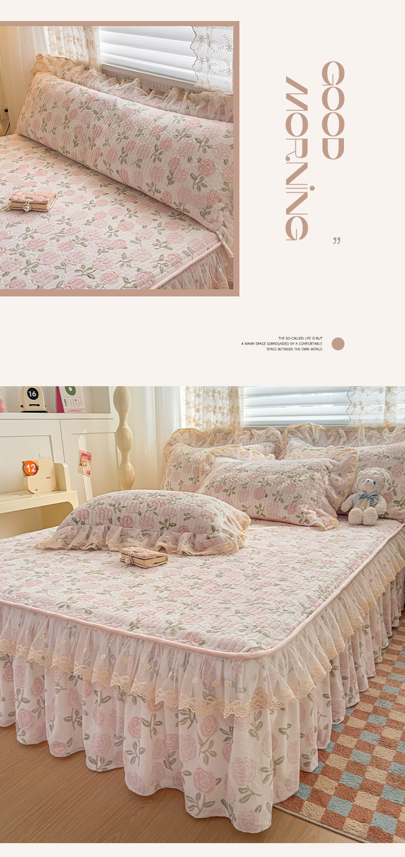 (总)家之硕家纺 2026新款精仿棉夹棉床裙三件套,彩韵,春芽,多丽粉,花恋,漫漫花开,倾城繁花,甜蜜花园,遇见浪漫