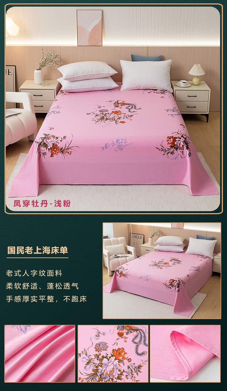 (总)居美良品 2025新款100%全棉纯棉国民老上海床单-牡丹飞燕,牡丹飞燕-淡玉,牡丹飞燕-米白,牡丹飞燕-抹茶绿,牡丹飞燕-浅粉,牡丹飞燕-天蓝,牡丹飞燕-紫色,组合图仅供展示不可下单