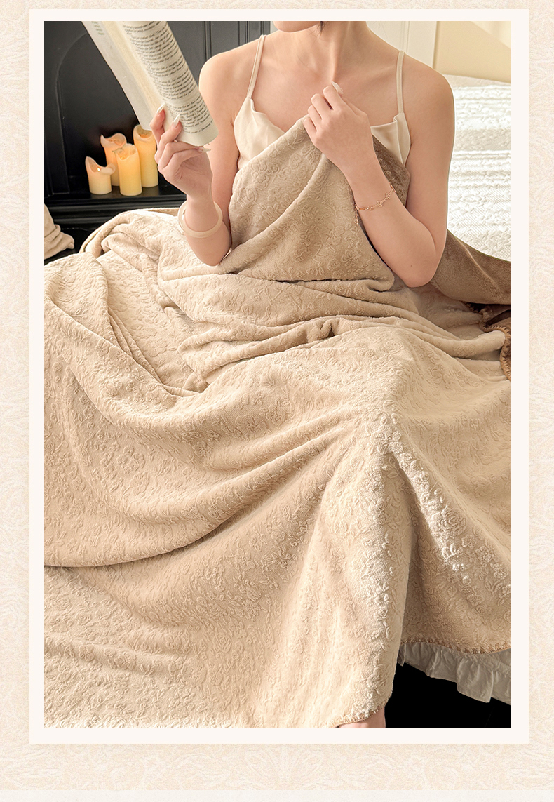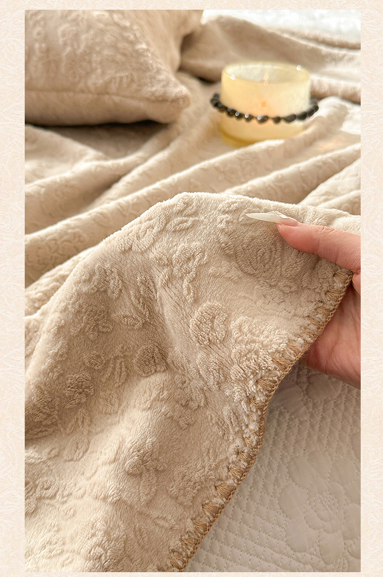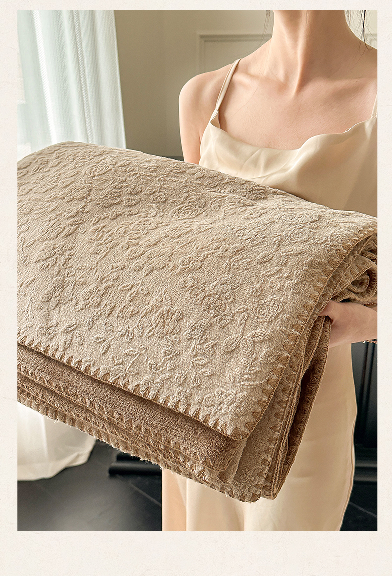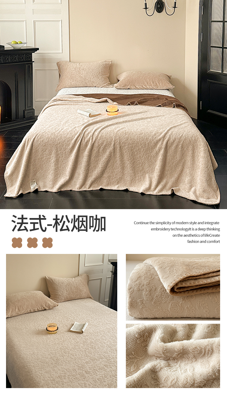 商品名称:丝幔家纺 2025新款法式雕花复合毛毯毯子 法式-松烟咖