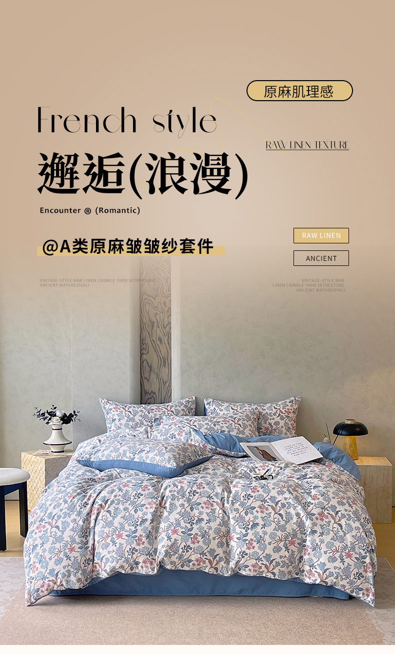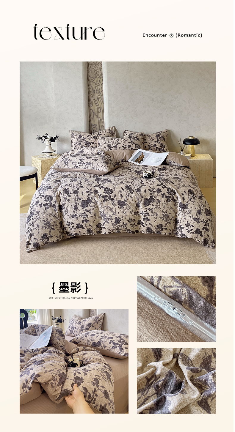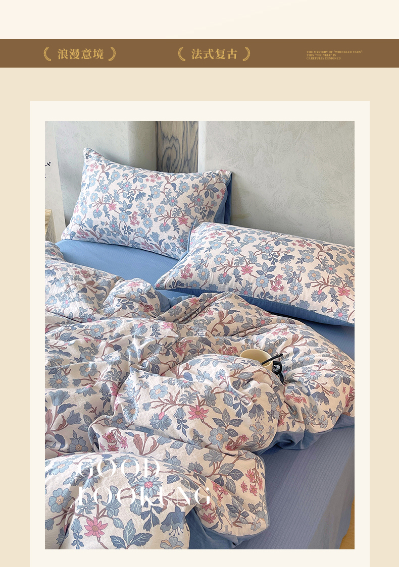 当前位置: 91家纺网 > 商品网购 > 床品套件 > 四件套 > 其它四件套 > 宝士康家纺 2025秋冬新品高克重A类原麻暗合四件套复古加厚双层纱仿亚麻套件 青蔓