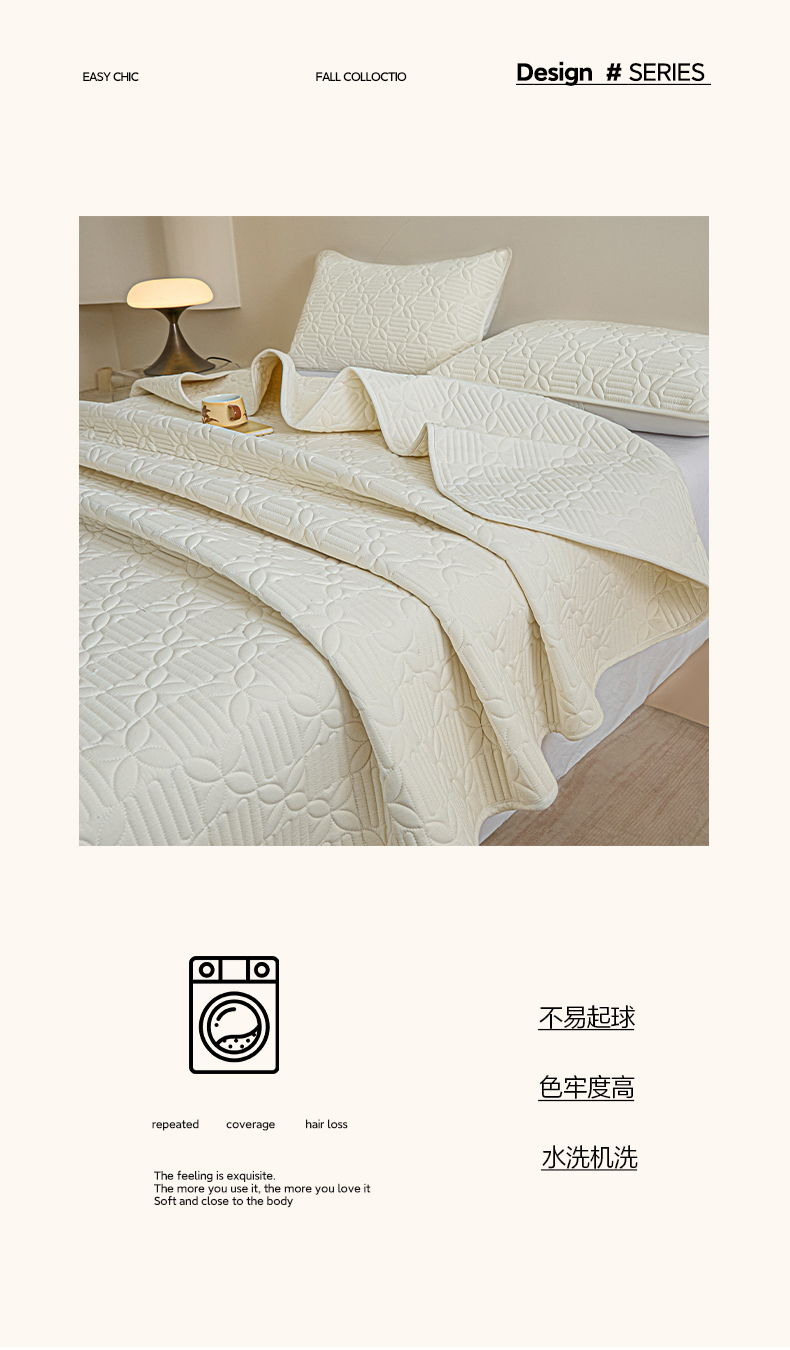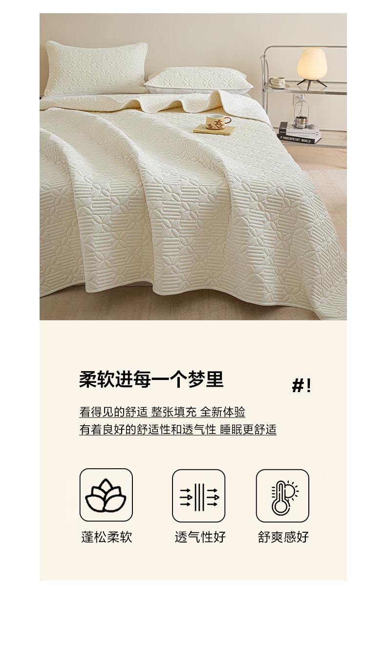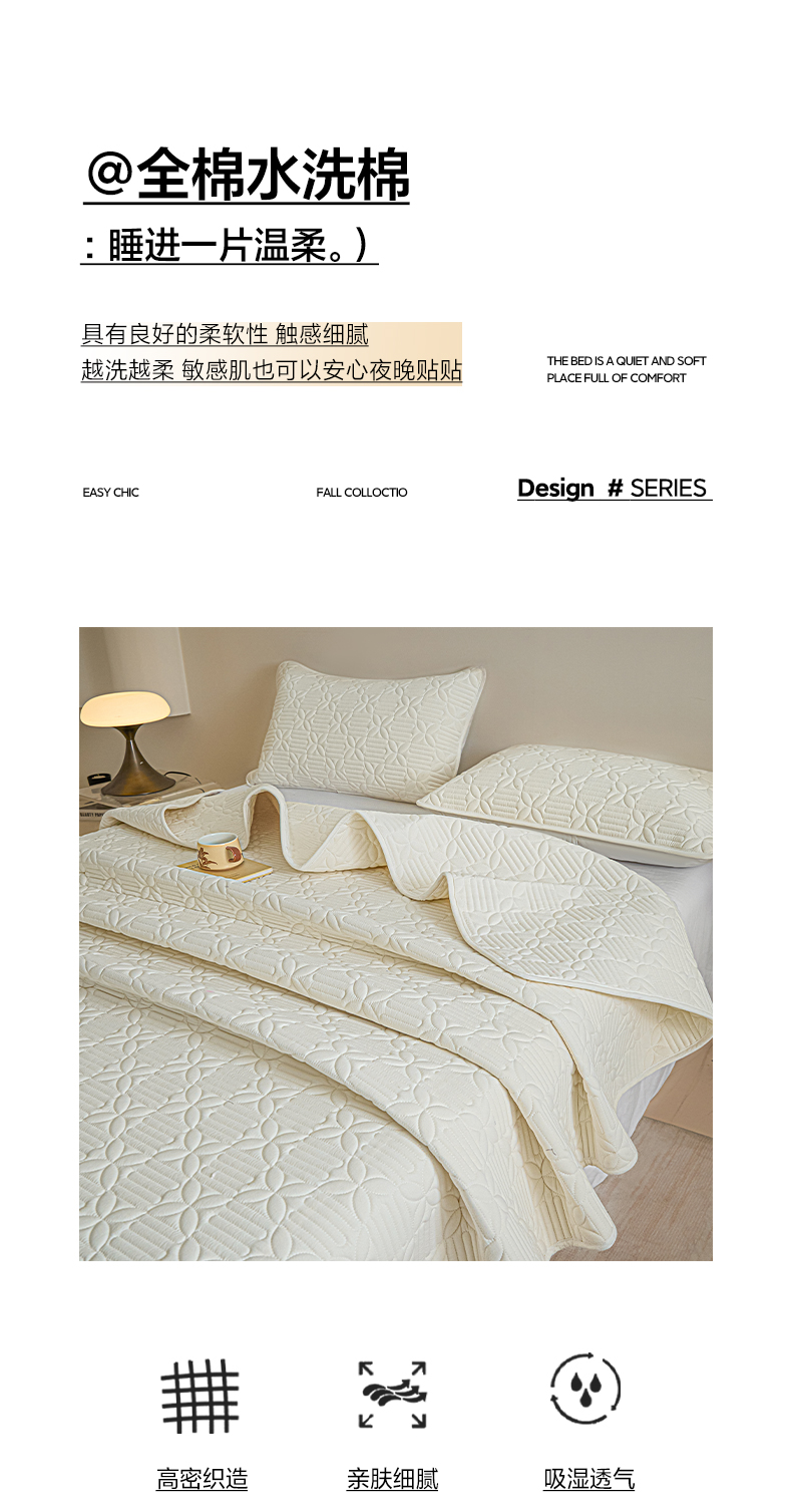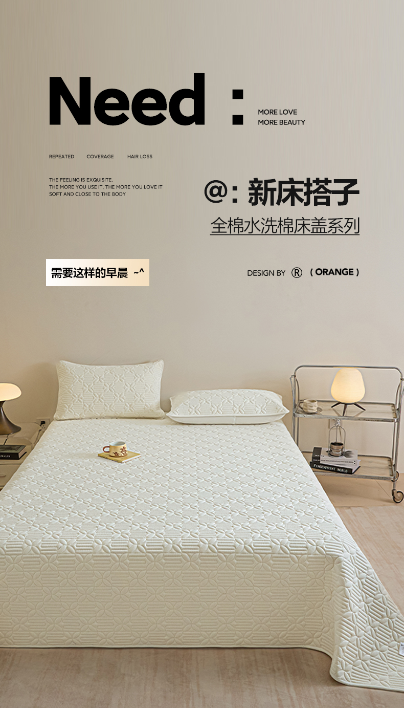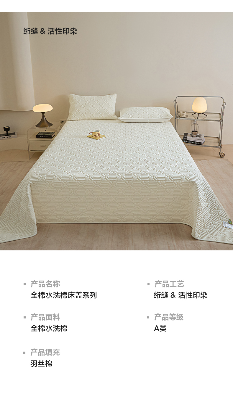 • 91家纺网 家纺一手货源 找家纺 芬晴家纺 2025新款A类全棉水洗棉床盖-心欢系列-遇见系列 依恋-白